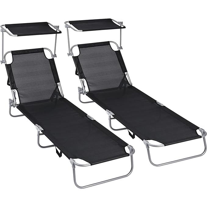 T-Lovendo Tumbonas con Parasol Plegables Playa Piscina Hamaca Suelo PACK DE DOS UNIDADES