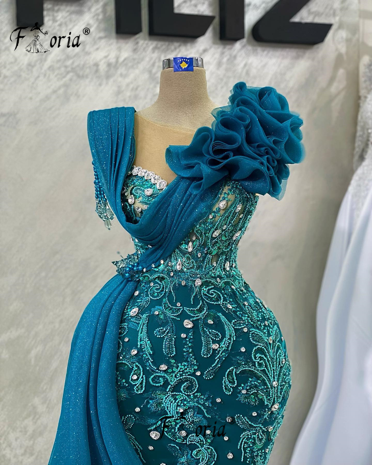 Vestido de fiesta Formal de Dubái con cuentas de perlas, traje de sirena de cristal azul, elegante, para ocasiones de noche