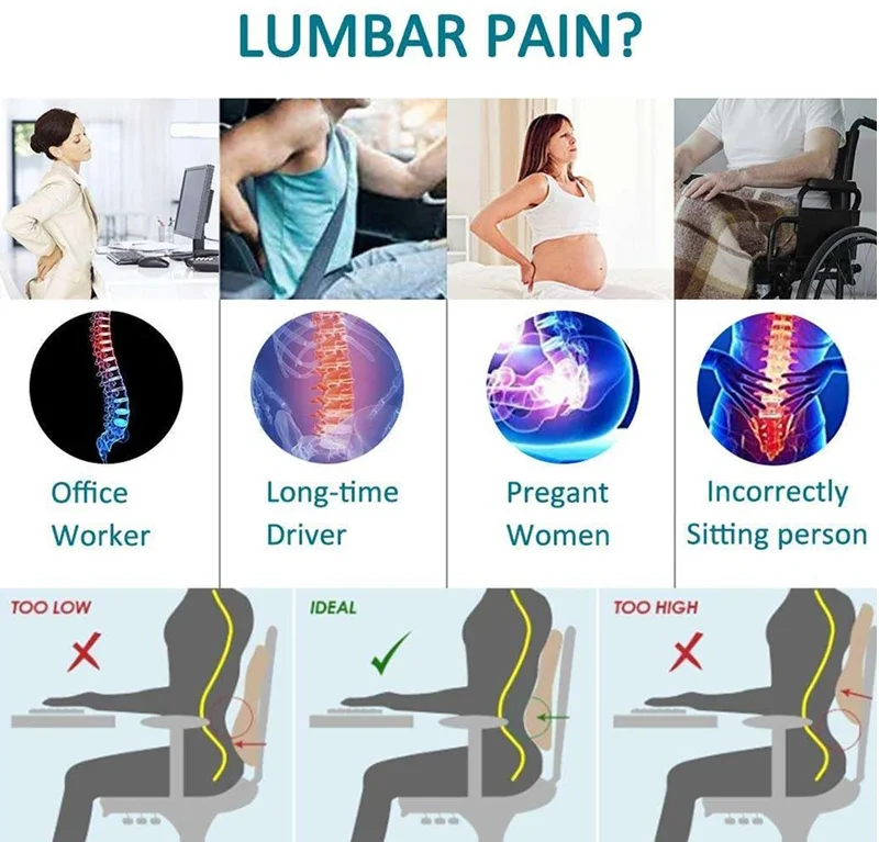1 cojín de asiento de coche de espuma viscoelástica para sillas de oficina y juegos, soporta la cintura y la cintura, suave y cómodo - TopDealBox