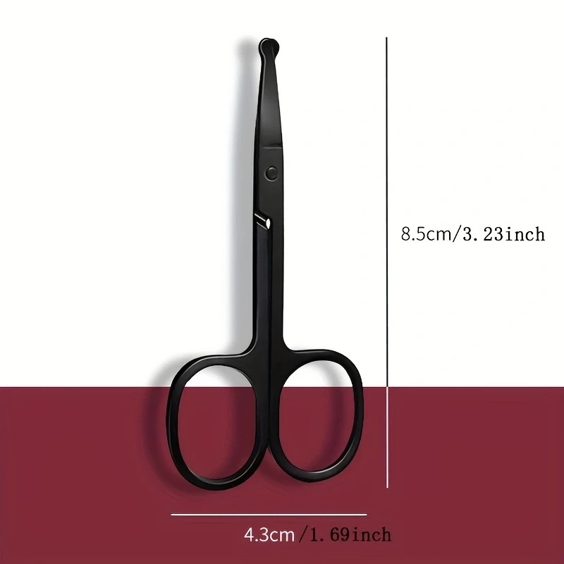 1 unidad de tijeras de pelo de nariz de seguridad con cabeza redonda negra clara de espejo plateado, tijeras neutrales de acero inoxidable 2042 - TopDealBox