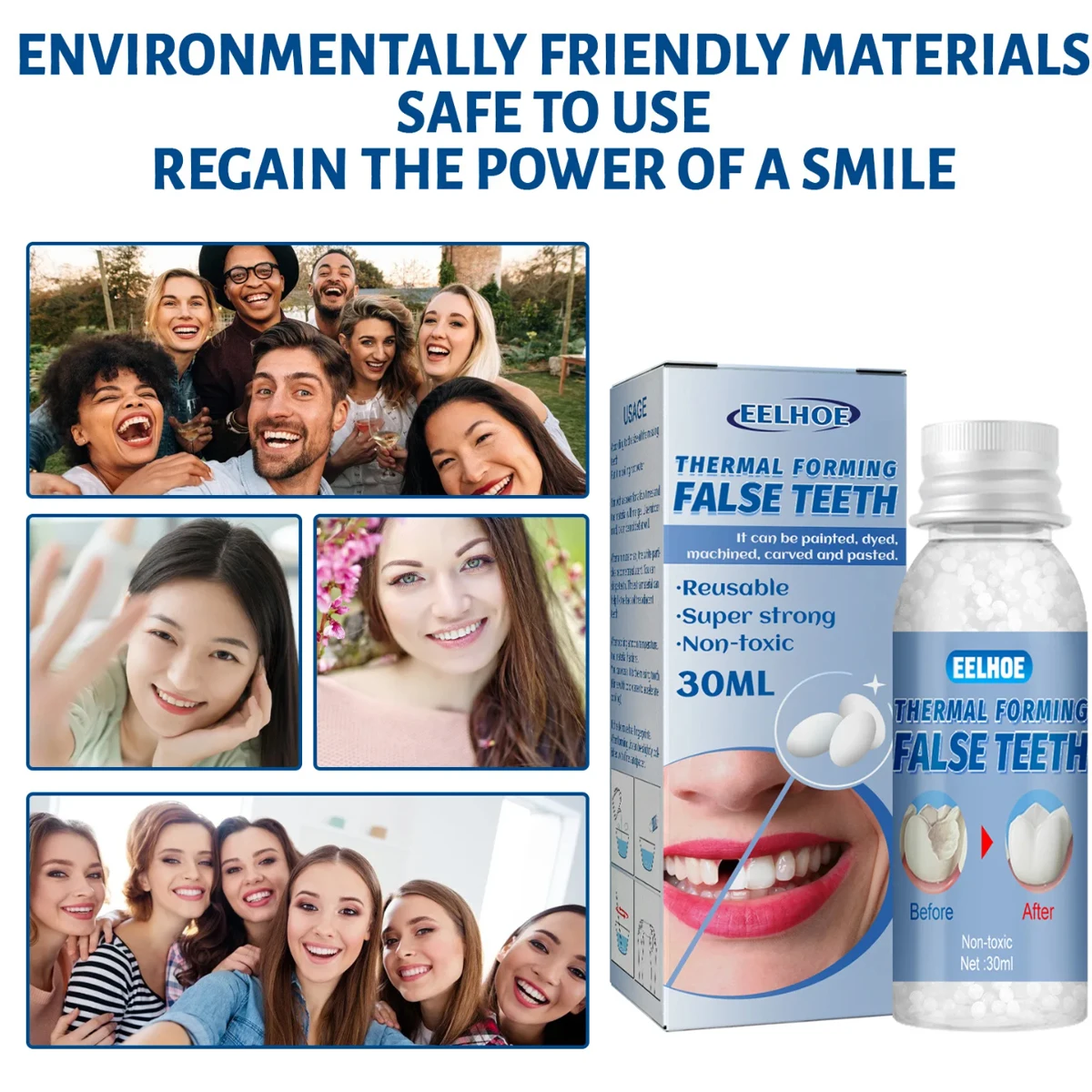 EELHOE Resina para Dientes Postizos, Encías Sólidas, Modificación de Materiales de Relleno Temporal, Odontología Restauradora, Higiene Bucal, Cuidado de Prótesis Dentales - TopDealBox