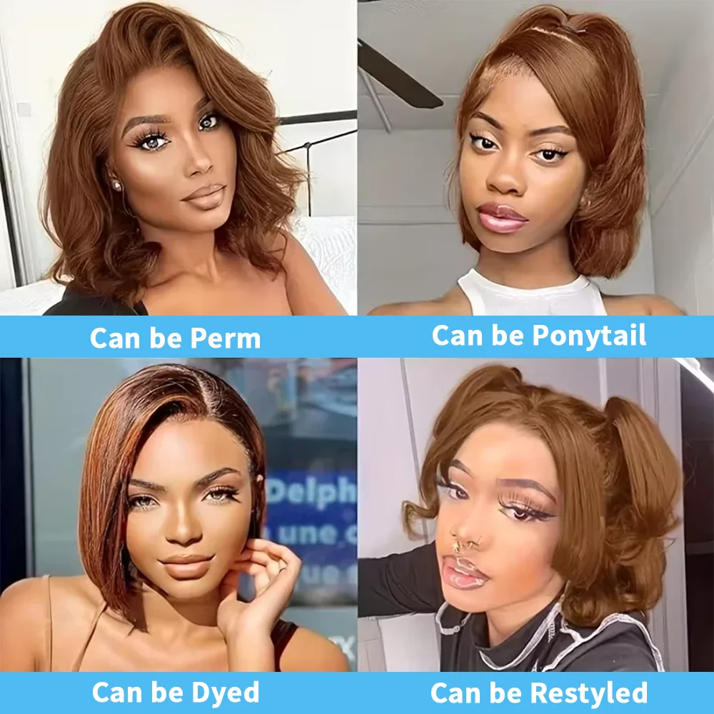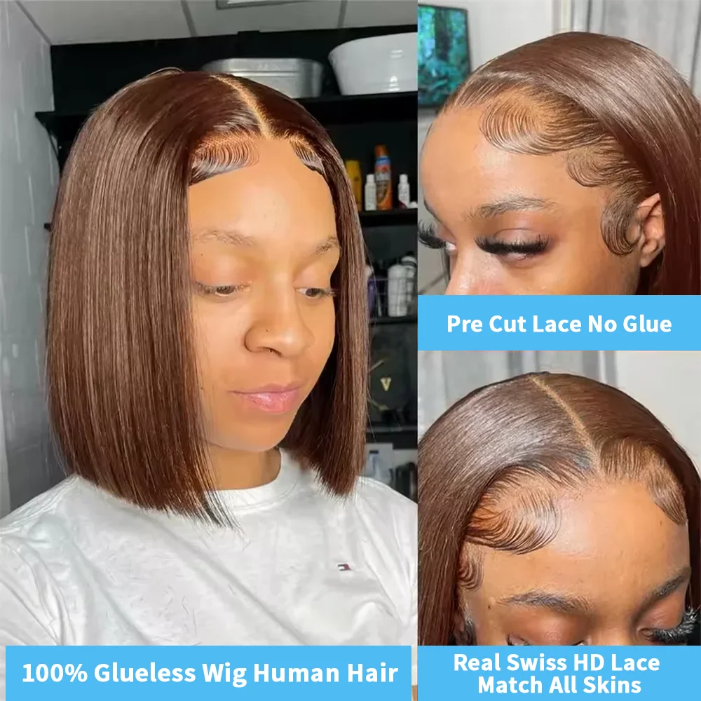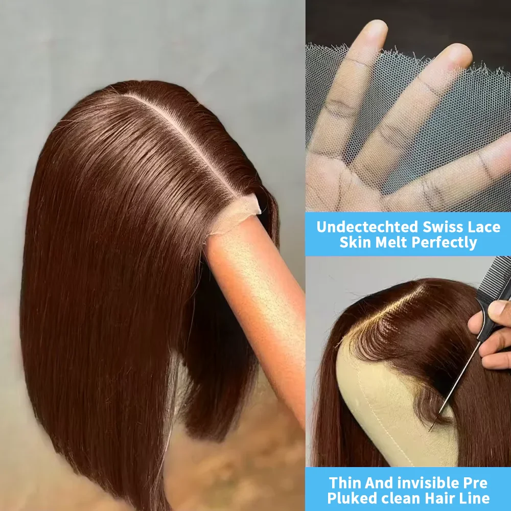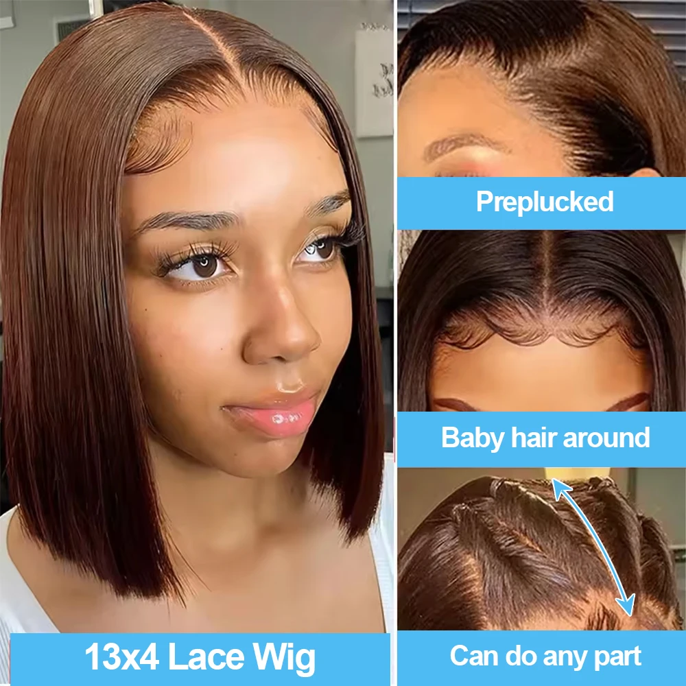 13x4 7x5 Listo para usar 250% de densidad # 4 pelucas cortas rectas de color marrón chocolate pelucas de cabello humano pelucas delanteras de encaje HD para mujeres - TopDealBox