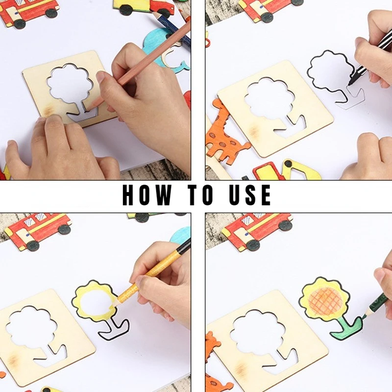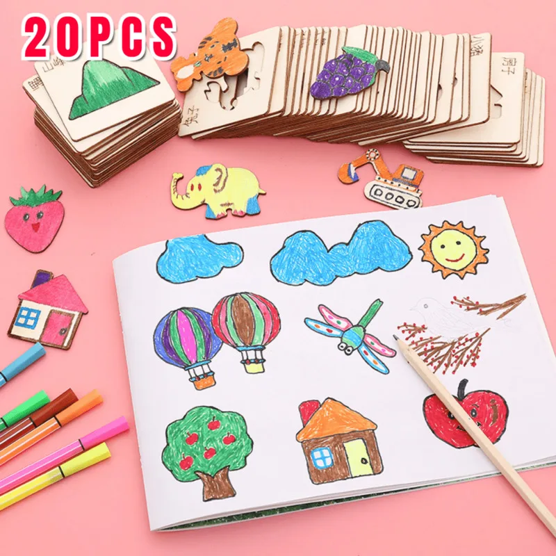 Kit de plantillas de dibujo de madera de 20 piezas, tablero de dibujo para niños, juguetes para colorear, rompecabezas artesanal, juguetes educativos Montessori, plantilla de accesorios - TopDealBox