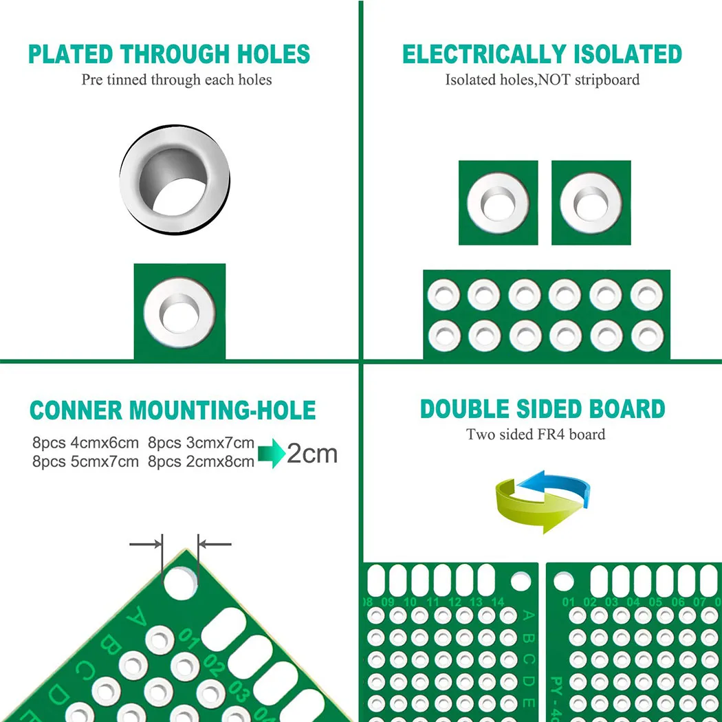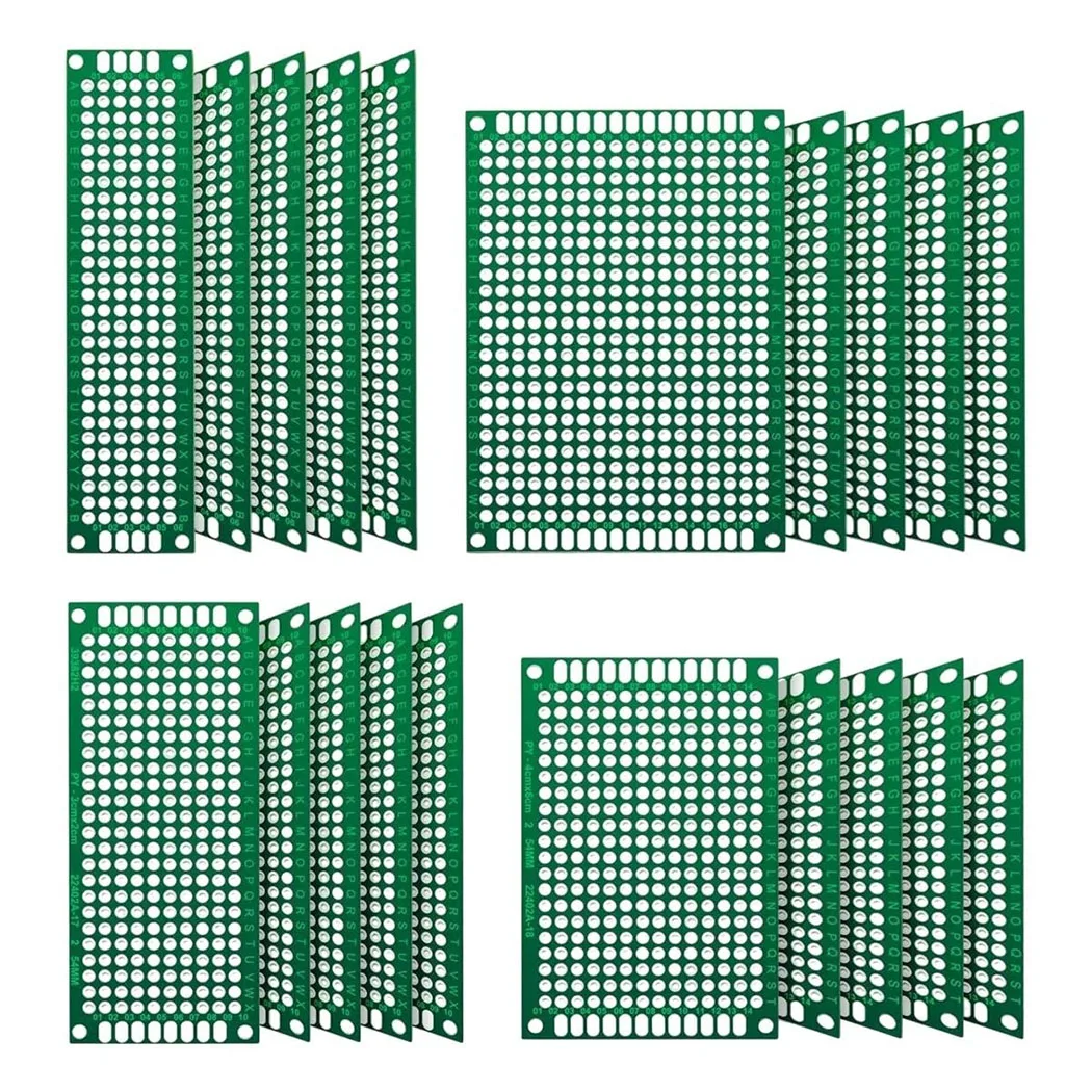 20 piezas de placas de prototipo PCB, placa de circuito verde con 4 tamaños compatibles, placa de prototipo PCB de doble cara para electrónica DIY - TopDealBox
