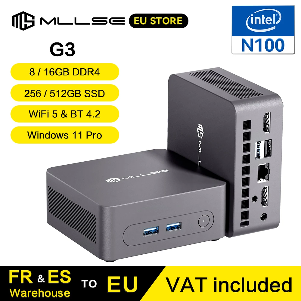 ♡Vista rápidaMini PC MLLSE G3 con procesador Intel N100, 16 GB de RAM DDR4, SSD, Wi-Fi 5, BT 4.2, Windows 11, Miniordenador de escritorio221.98 EUREUR 443.96Destacado★★★★★★4.9