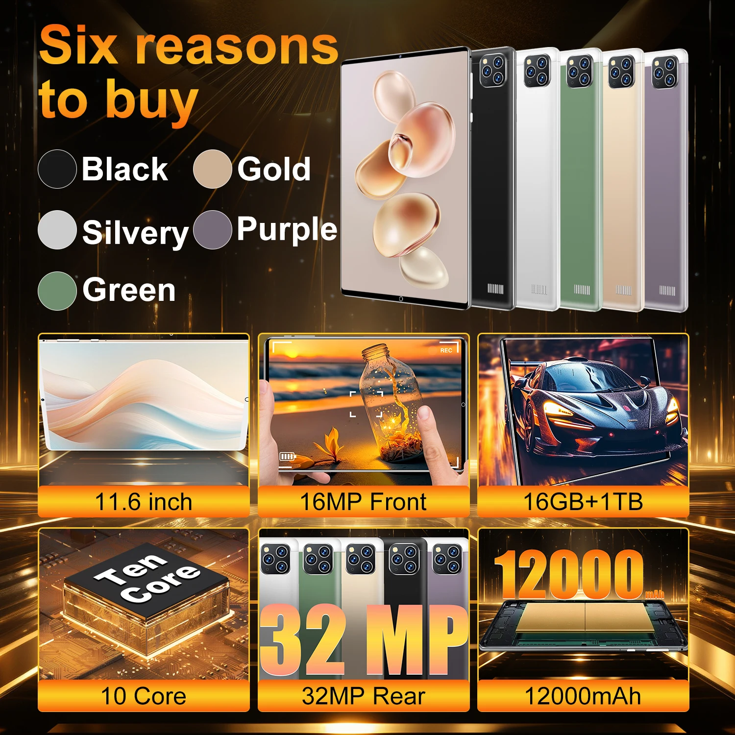 ♡Vista rápida2025 5G Tablet Android 13,0 nuevo 11,6 pulgadas 16GB RAM 1TB ROM Tablet 16MP 32MP 12000mAh 10Core WIFI Bluetooth tableta de red57.00 EUREUR 60.00Destacado★★★★★★4.9