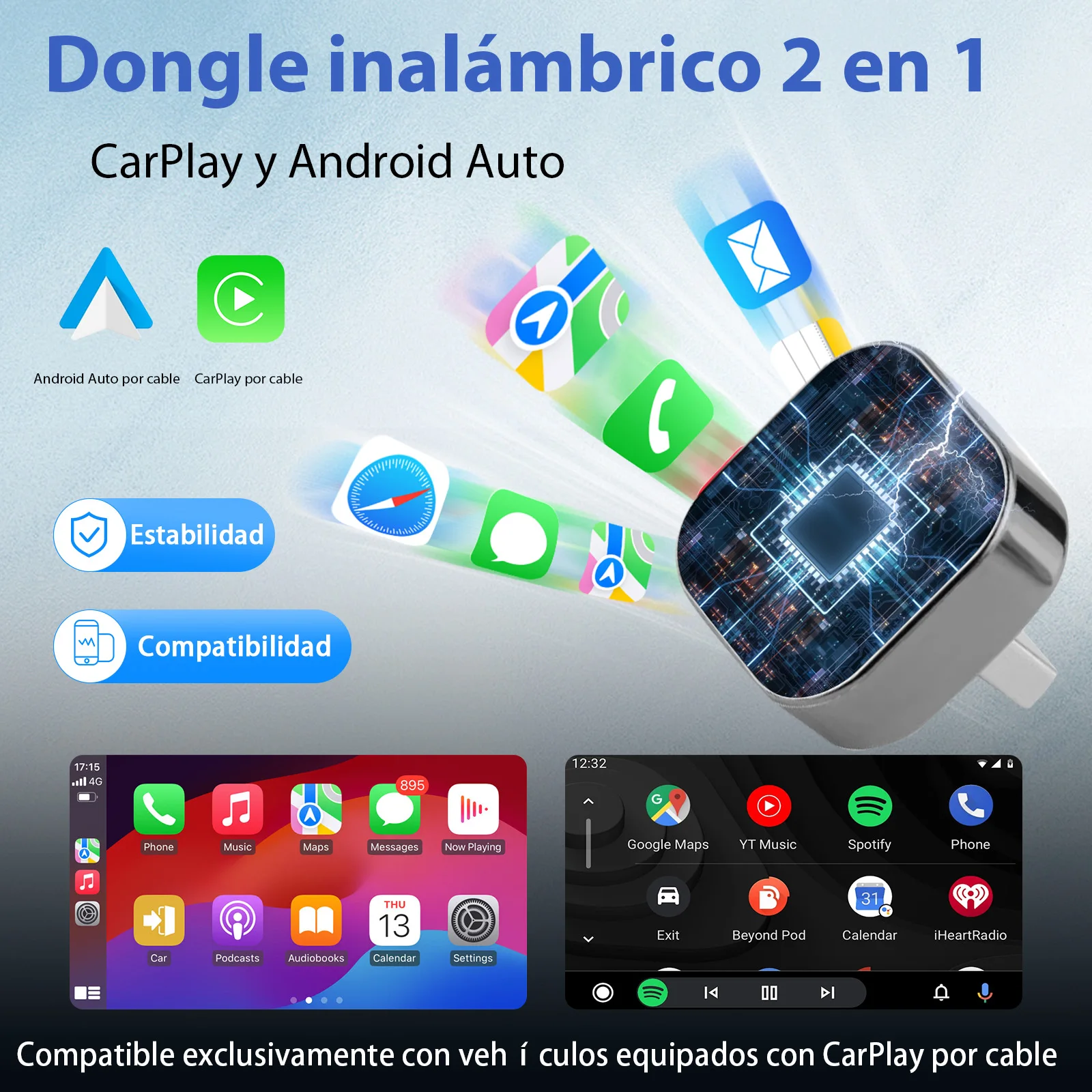 ♡Vista rápidaDongle inalámbrico CarPlay 2 en 1, adaptador inalámbrico para Android Auto, caja inteligente AI, sistemas inteligentes para coche con CarPlay con cable10.39 EUREUR 165.87Destacado★★★★★★4.9