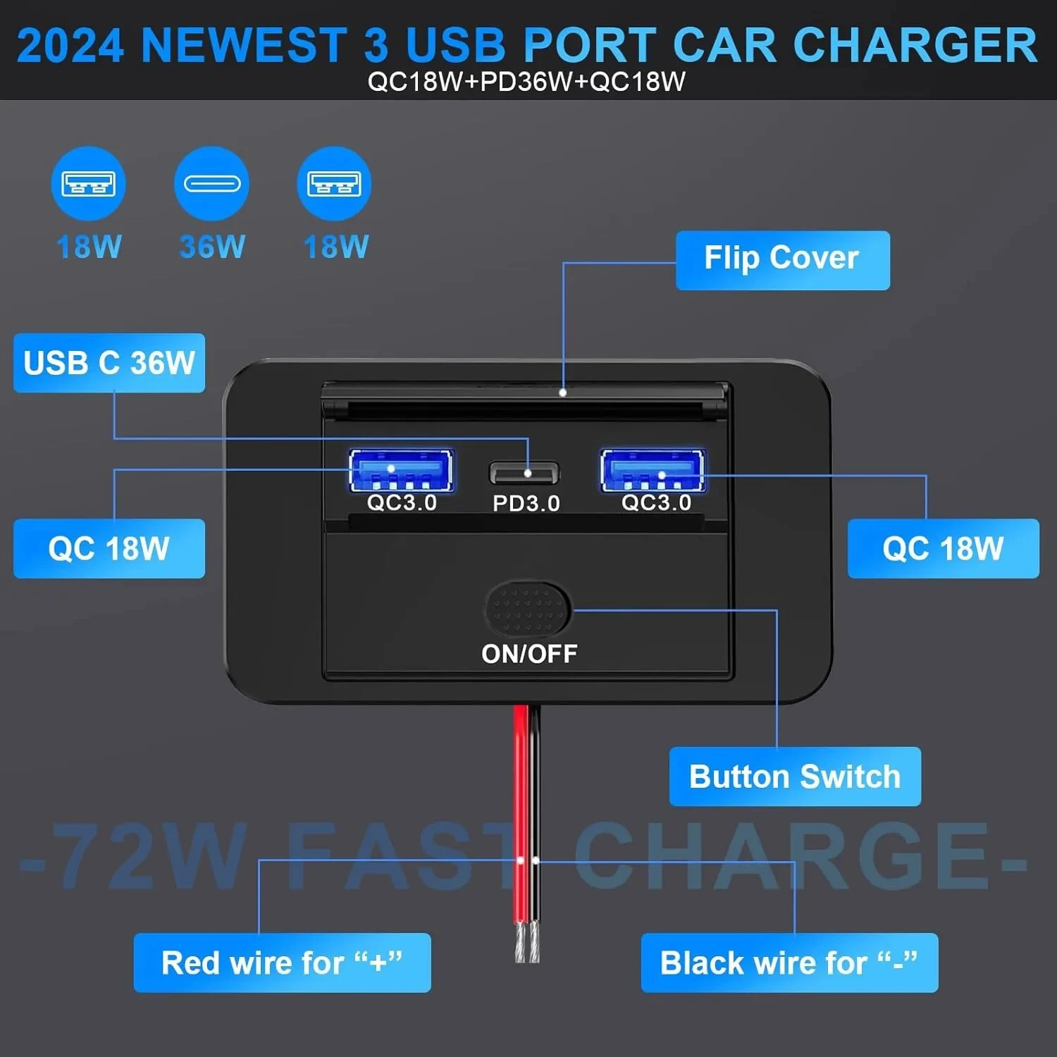 3 puertos 12V RV salida USB 72W USB Dual C 36W y doble puerto QC 3,0 18W cargador de coche accesorios para coche autobús RV camión - TopDealBox