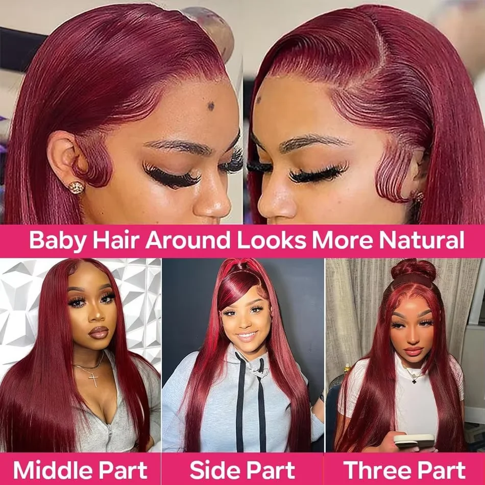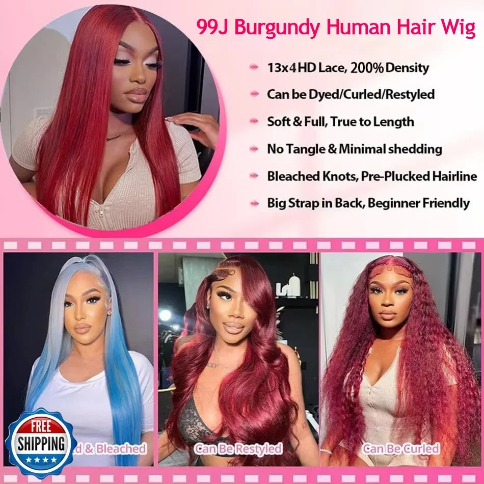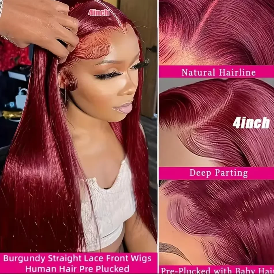 30 40 pulgadas 99J color 13x4 pelucas de cabello humano con encaje Frontal recto Borgoña 13x6 HD pelucas frontales de encaje transparente pelucas rojas 99J - TopDealBox