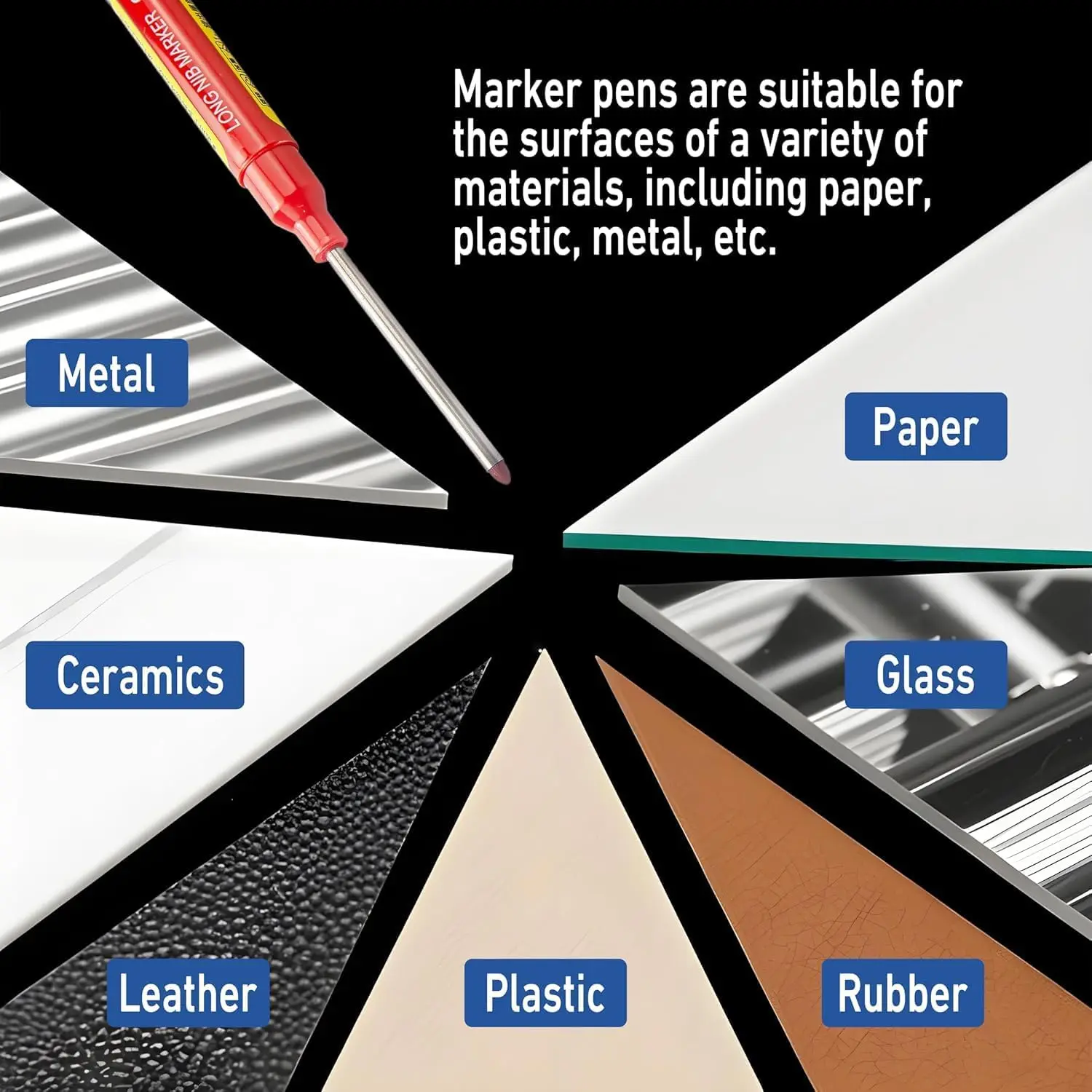 4-40 Uds Blanco/Negro/azul/rojo 45mm rotuladores de Agujero Profundo punta larga pluma de carpintero impermeable para medir carpintería Oficina - TopDealBox