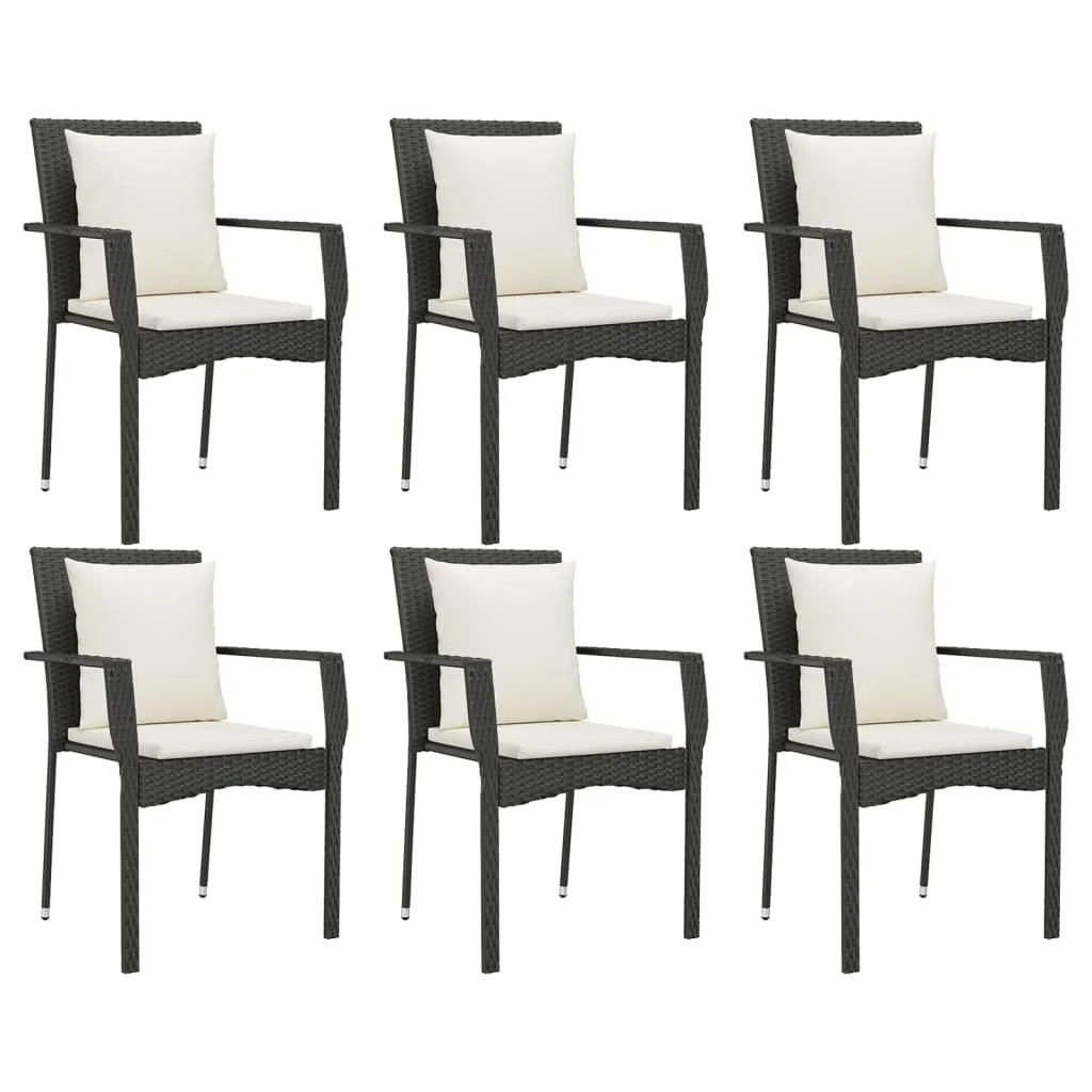 7-TLG. Grupo de comedor de jardín de poliratán negro con cojines - TopDealBox