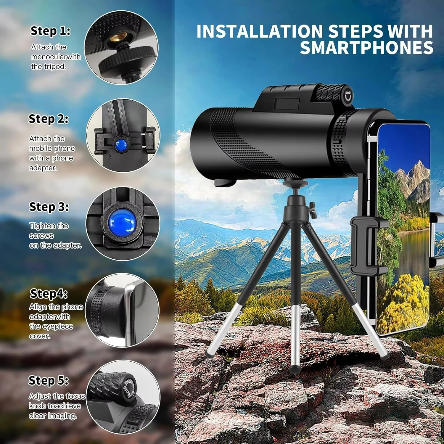 Telescopio Monocular de Alta Potencia 80*100 para Adultos y Niños, Ideal para Viajes al Aire Libre - TopDealBox