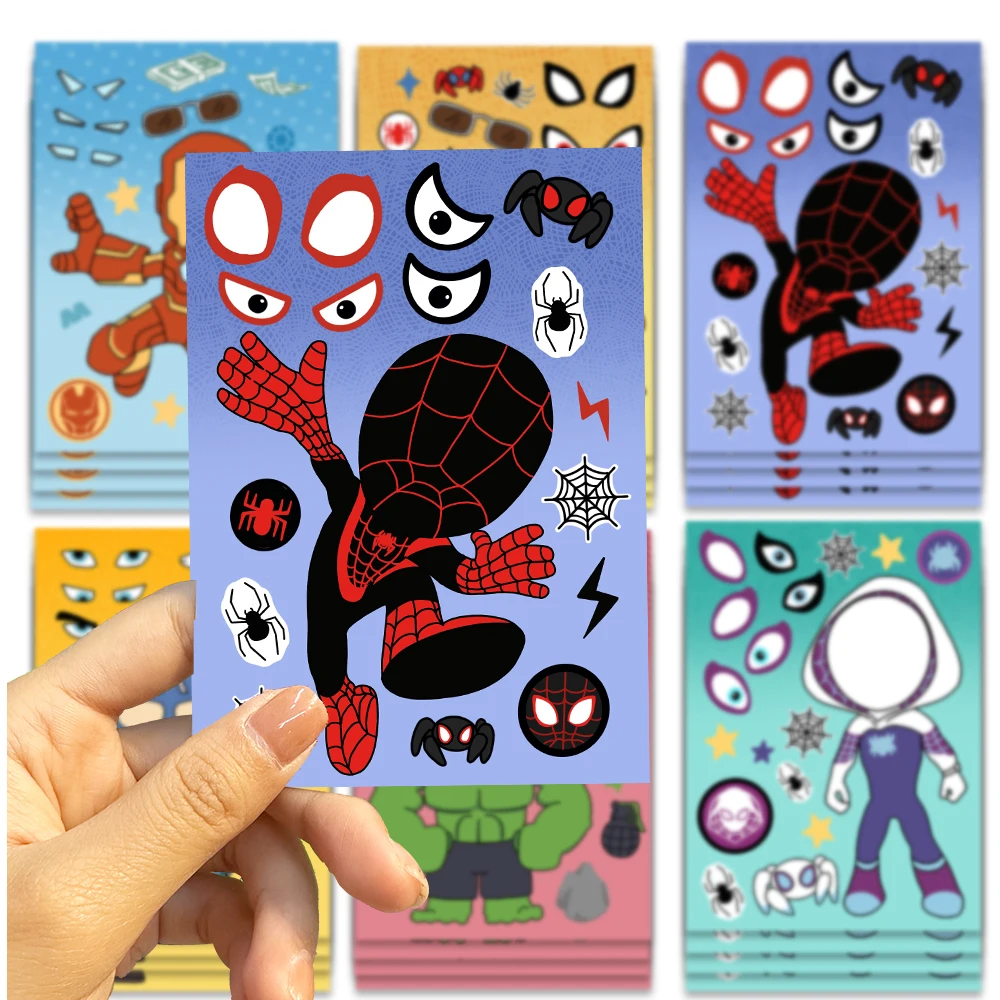 8/16/24 Uds SpiderMan Iron Man pegatina hacer una cara niños DIY rompecabezas divertido Anime montar pegatinas juguetes para niños niñas regalos