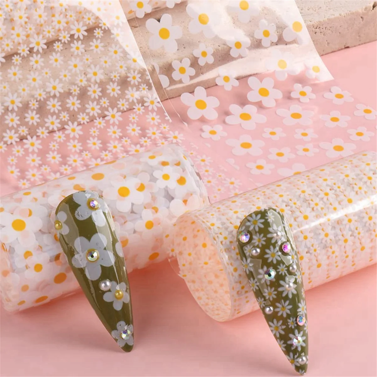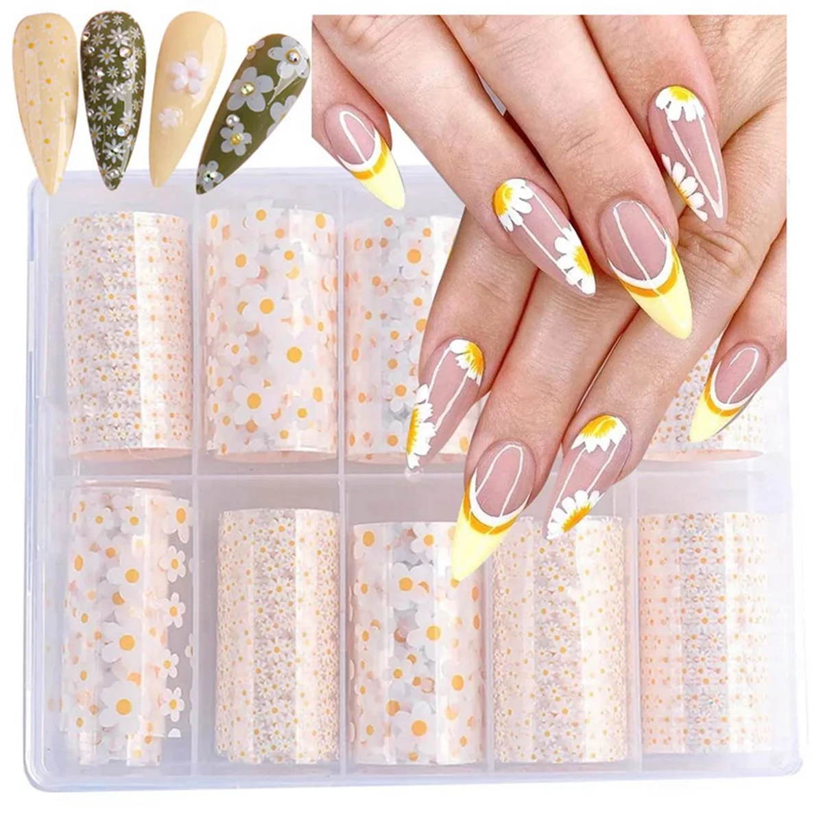 A71P 10 rollos Mini láminas de transferencia de uñas de flores blancas suministros de uñas para decoración de uñas primavera verano tema Floral transferencia de lámina de uñas - TopDealBox