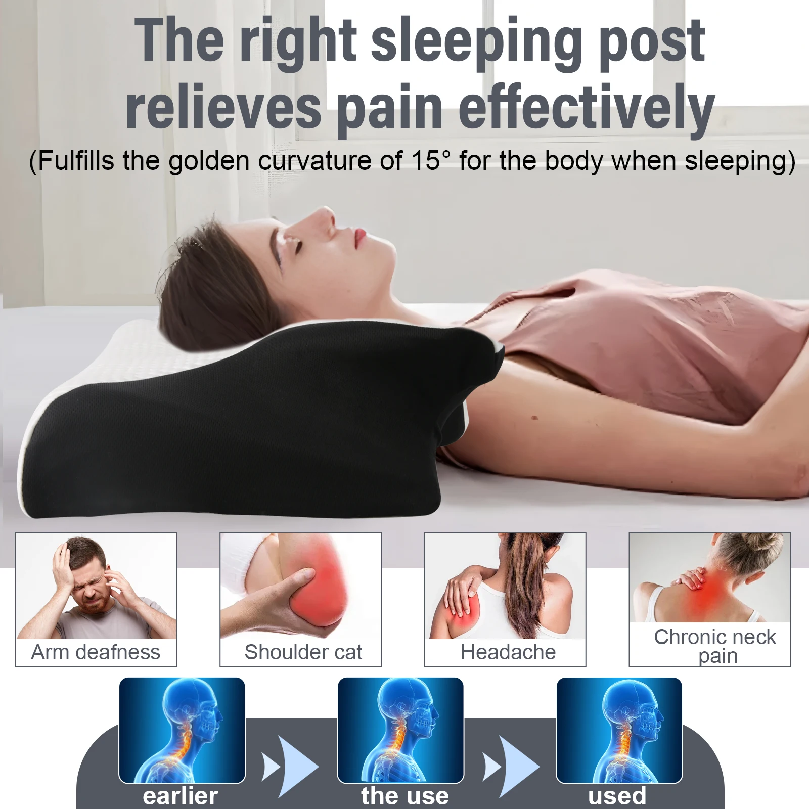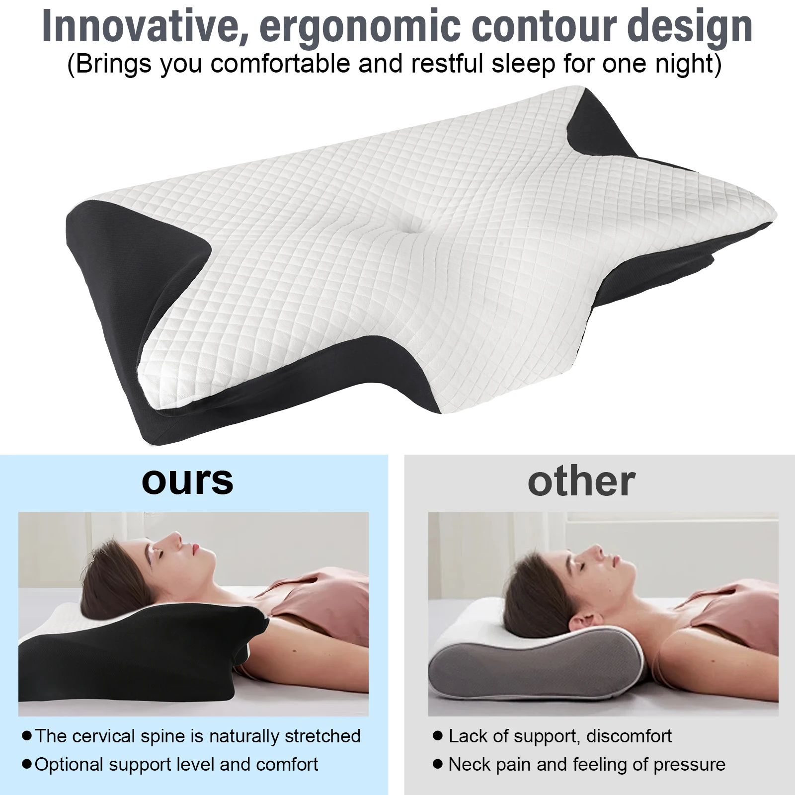 Almohada Cervical de Espuma Viscoelástica Butterfly, Rebote Lento, Contorno Ergonómico, Soporte Ortopédico para Aliviar el Dolor de Cuello y Hombros, Sueño Profundo - TopDealBox