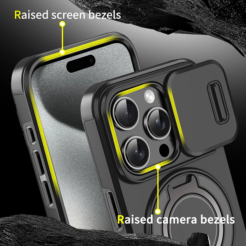 Anillo de soporte de Metal oculto giratorio de 360 ° para coche, lente de protección de ventana de empuje, funda de teléfono a prueba de golpes para IPhone 16 Pro Max 16 Plus - TopDealBox