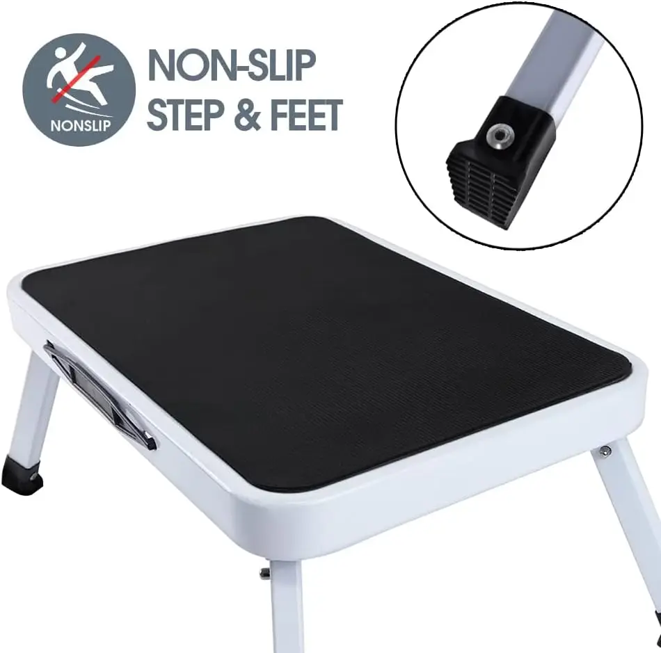 ARISE SHOP-Taburete plegable de metal con escalera portátil de 1 escalón, taburete plegable antideslizante con plataforma de goma antideslizante, taburetes de capacidad de 330 libras para adultos, niños, cocina, inodoro, baño, campamento, oficina, - TopDealBox