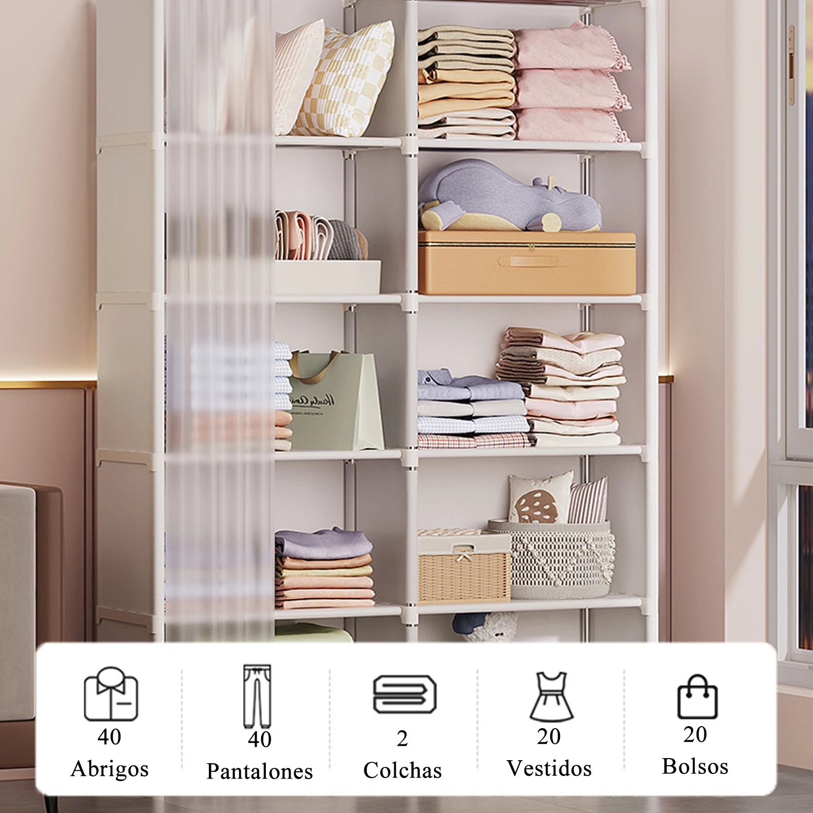 ♡Vista rápidaArmario para ropa, estante de almacenamiento a prueba de polvo, contenedor organizador, muebles de dormitorio multicapa, estantería, montaje Simple25.39 EUREUR 90.41Destacado★★★★★4.4