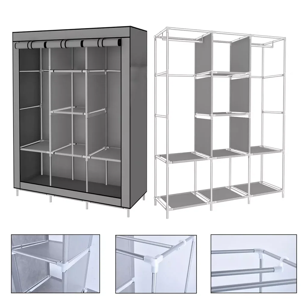 Armarios de 128x45x170cm, armario de almacenamiento multicapa para el hogar, colgador de ropa plegable a prueba de polvo, armario de ropa para dormitorio - TopDealBox