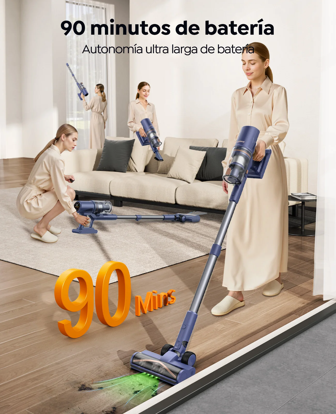 ‌Aspiradora Inalámbrica Laresar V11 - 75000PA Alta Succión, 90 Min Autonomía, 650W Potente, Pantalla Inteligente, Luz Verde, Batería Extraíble y Accesorios Multiusos - Para Hogar y Mascotas - TopDealBox