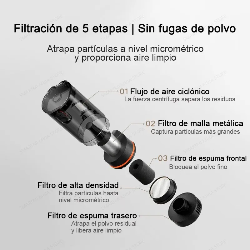 ♡Vista rápidaAspiradora inalámbrica de mano MIJIA, succión de 13KPa, para el hogar y el coche, aspiradora portátil sin cable, duración máxima de la batería 30min58.69 EUREUR 1301.12Destacado★★★★★★4.9