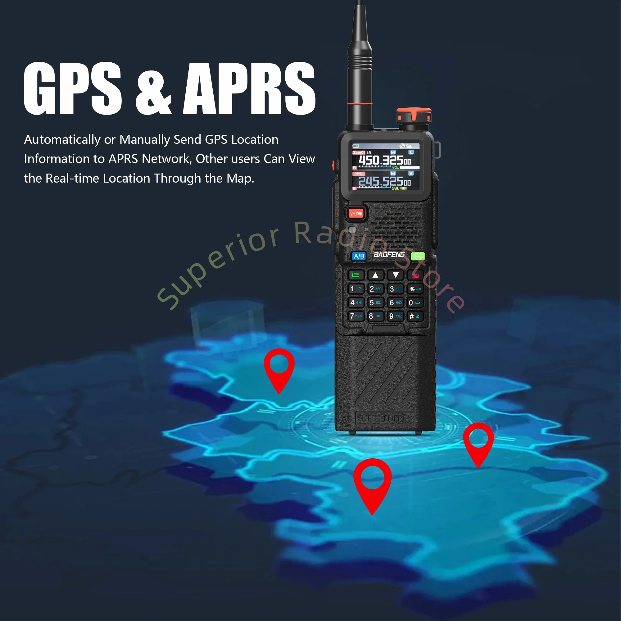 Baofeng UV-5RH PRO GPS Walkie Talkie APRS 6800mAh Tipo-C Alarma de caída NOAA Alta capacidad Largo alcance VHF UHF AM Actualización de UV-5RM - TopDealBox