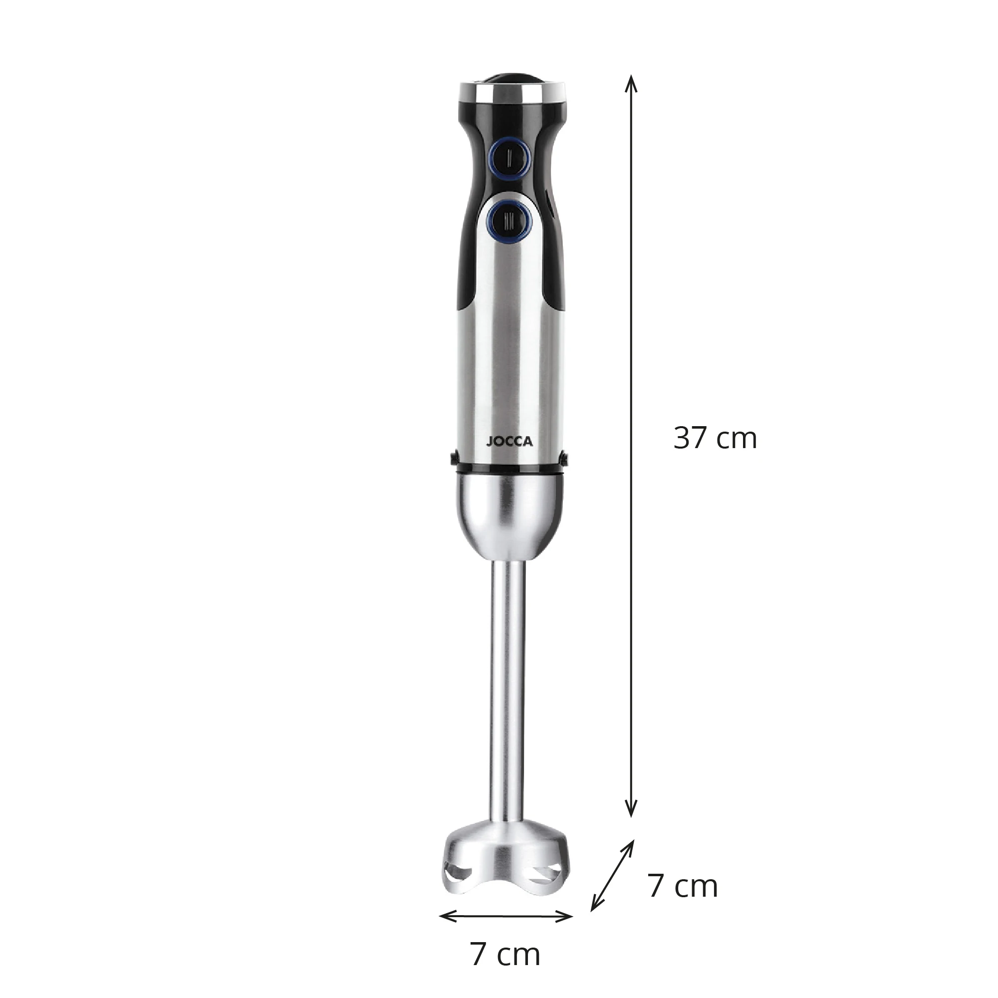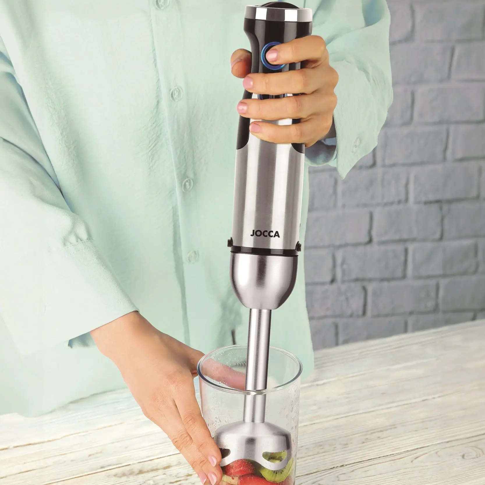 Batidora de mano Jocca con potencia de 1200W, 6 velocidades, modo turbo, sistema Simple-Click y cuatro cuchillas de acero inoxidable. Incluye vaso medidor, varillas batidoras y picadora. - TopDealBox