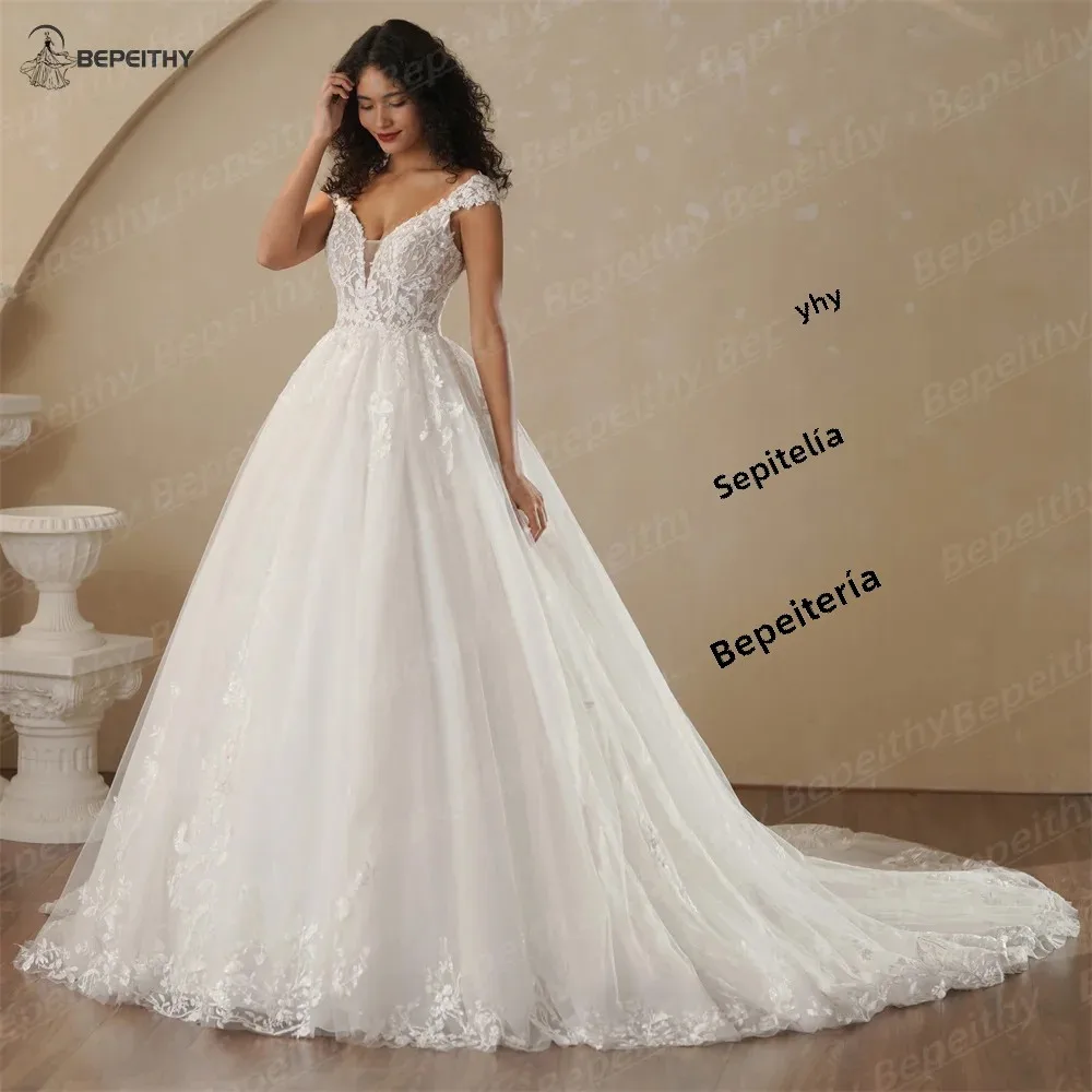 ♡Vista rápidaBEPEITHY, vestidos de novia de color marfil personalizados con mangas casquillo para mujer, vestido de novia Sexy con espalda descubierta y encaje con cola de corte 2025169.99 EUREUR 284.89Destacado★★★★★5.0