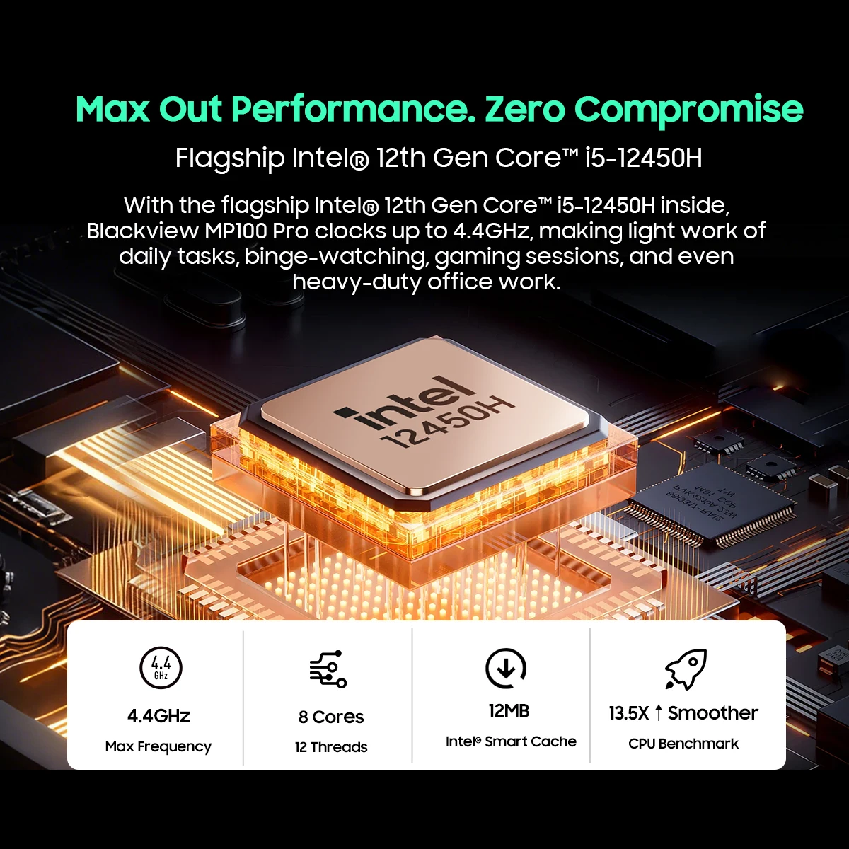Blackview MP100PRO NUEVO Mini PC Intel I5-12450H Windows 11 8 Núcleos 12 Hilos 16GB+512GB / 1TB WiFi 6 Mini Ordenador PC BT5.2 - TopDealBox