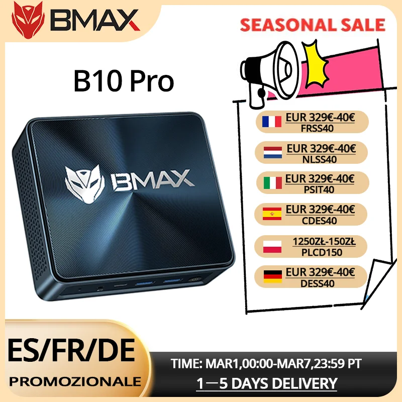 ♡Vista rápidaBMAX B2 Power Intel 5205U Mini PC 8 GB RAM 256 GB SSD Windows 11 Pro Wi-Fi de Doble Banda Bluetooth 5.0 USB 4 HDMI 1131.25 EUREUR 423.95Destacado★★★★★★4.8