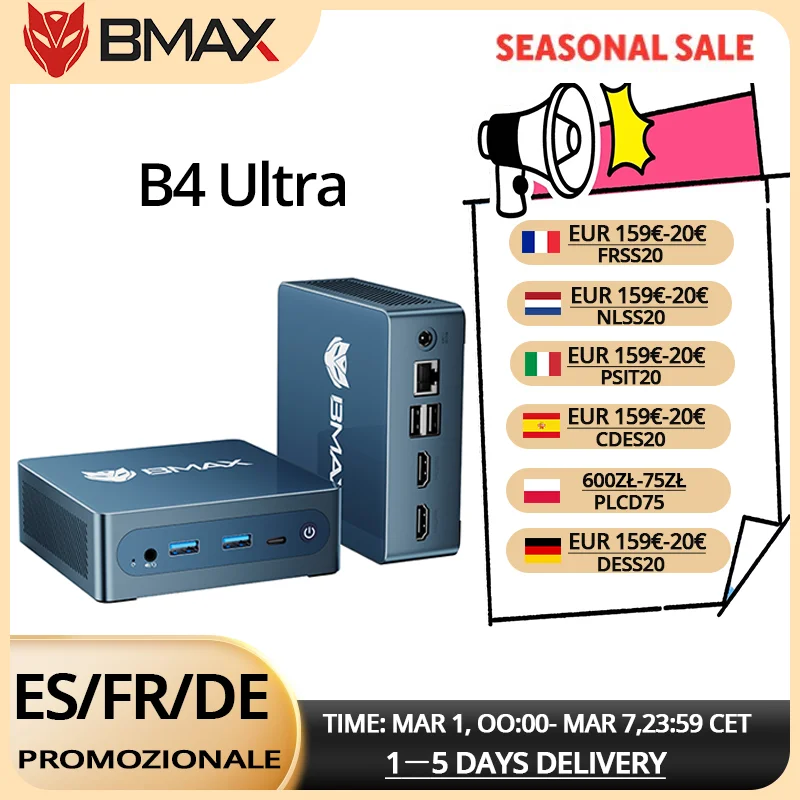 ♡Vista rápidaBMAX B4 Ultra Mini PC Intel N150 con 12 GB de RAM, 512 GB SSD, Wi-Fi dual 2,4 GHz 5 GHz, Bluetooth 5.0, Mini computadora Barebone177.52 EUREUR 612.75Destacado★★★★★4.0