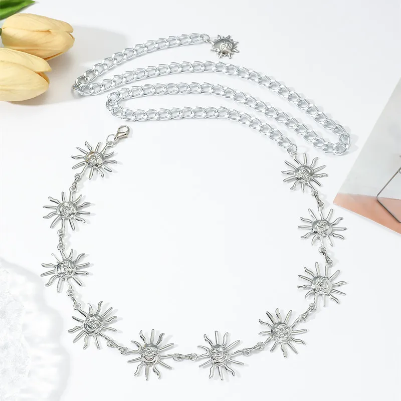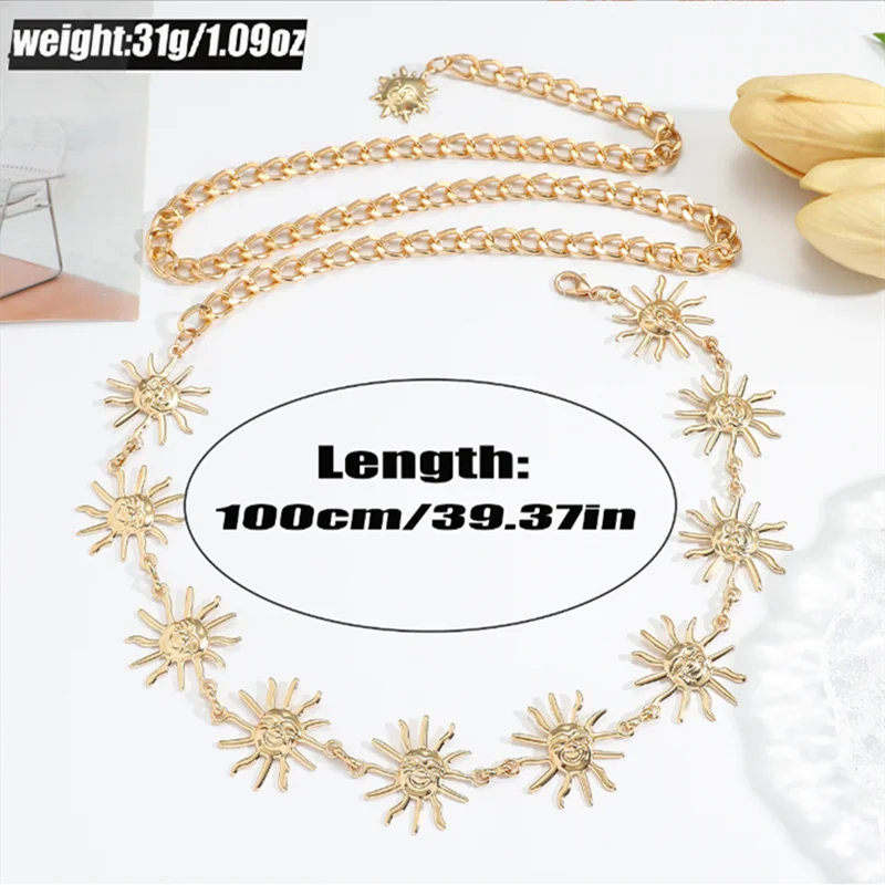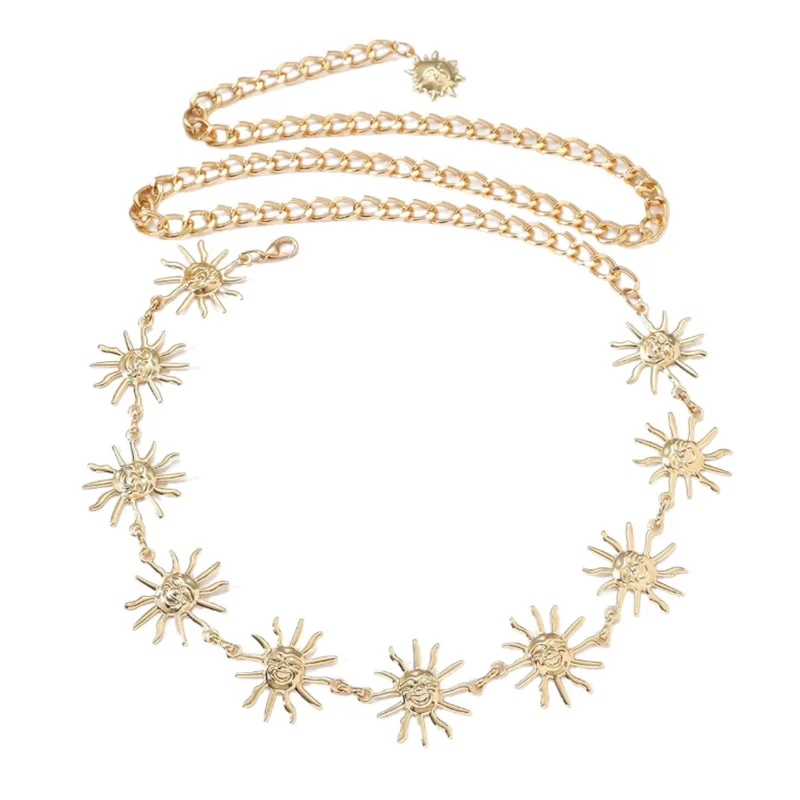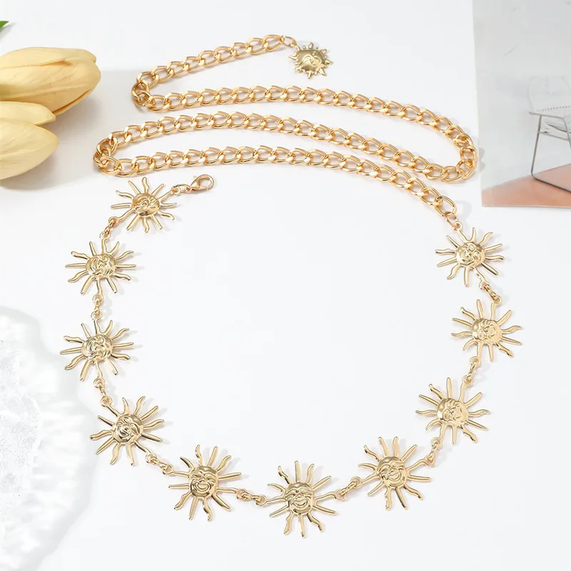 Bohemio Retro Metal cara sonriente girasol verano moda cintura cadena vestido cintura versátil cuerpo cadena Sexy Cummerbunds - TopDealBox