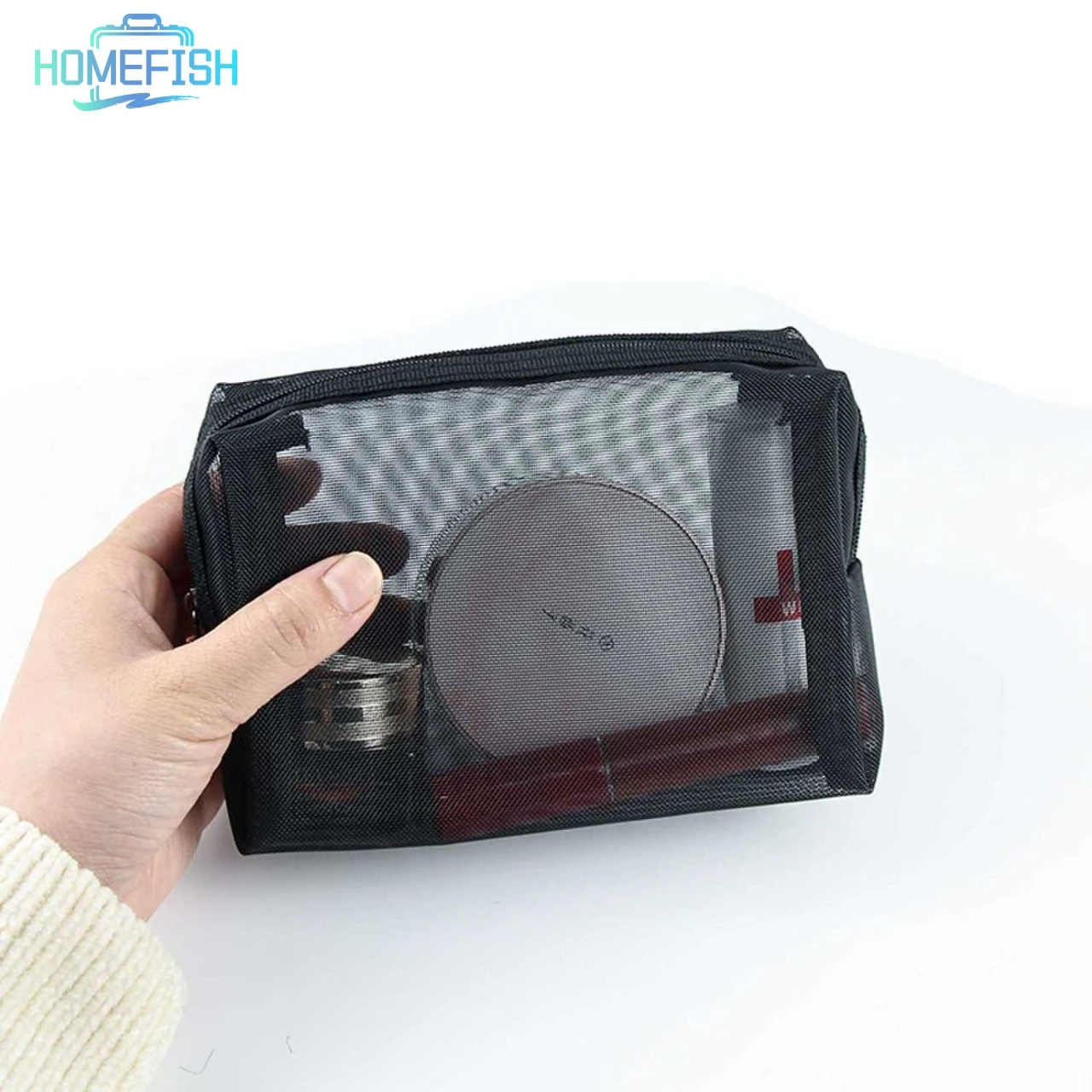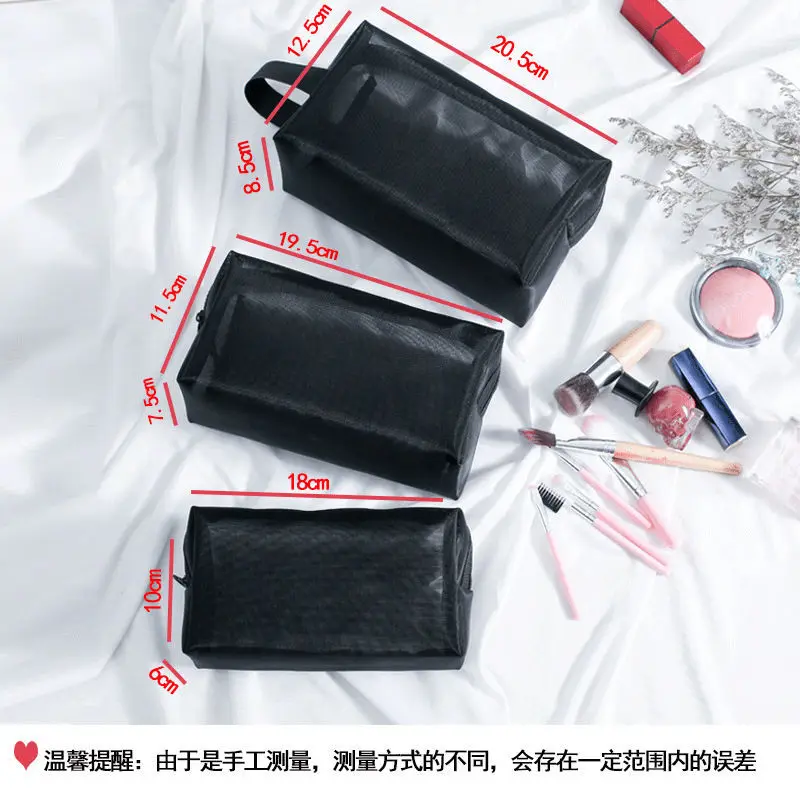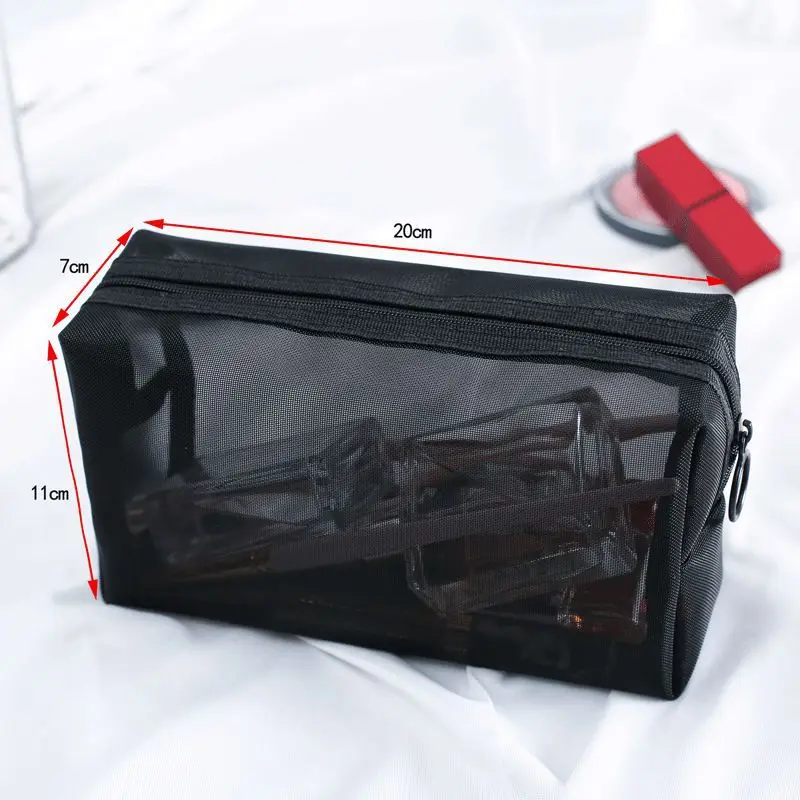 Bolsa de Cosméticos de Malla Negra para Viaje HOMEFISH, Bolsa de Maquillaje con Cierre para Mujer, Bolsa de Aseo, Organizador de Maquillaje, Bolsa de Almacenamiento Portátil - TopDealBox