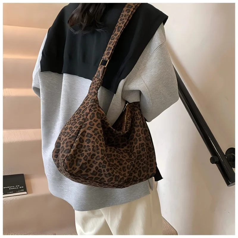 Bolso de hombro informal de tela suave para mujer, bolso cruzado Retro con estampado de leopardo de gran capacidad para viajes y salidas - TopDealBox