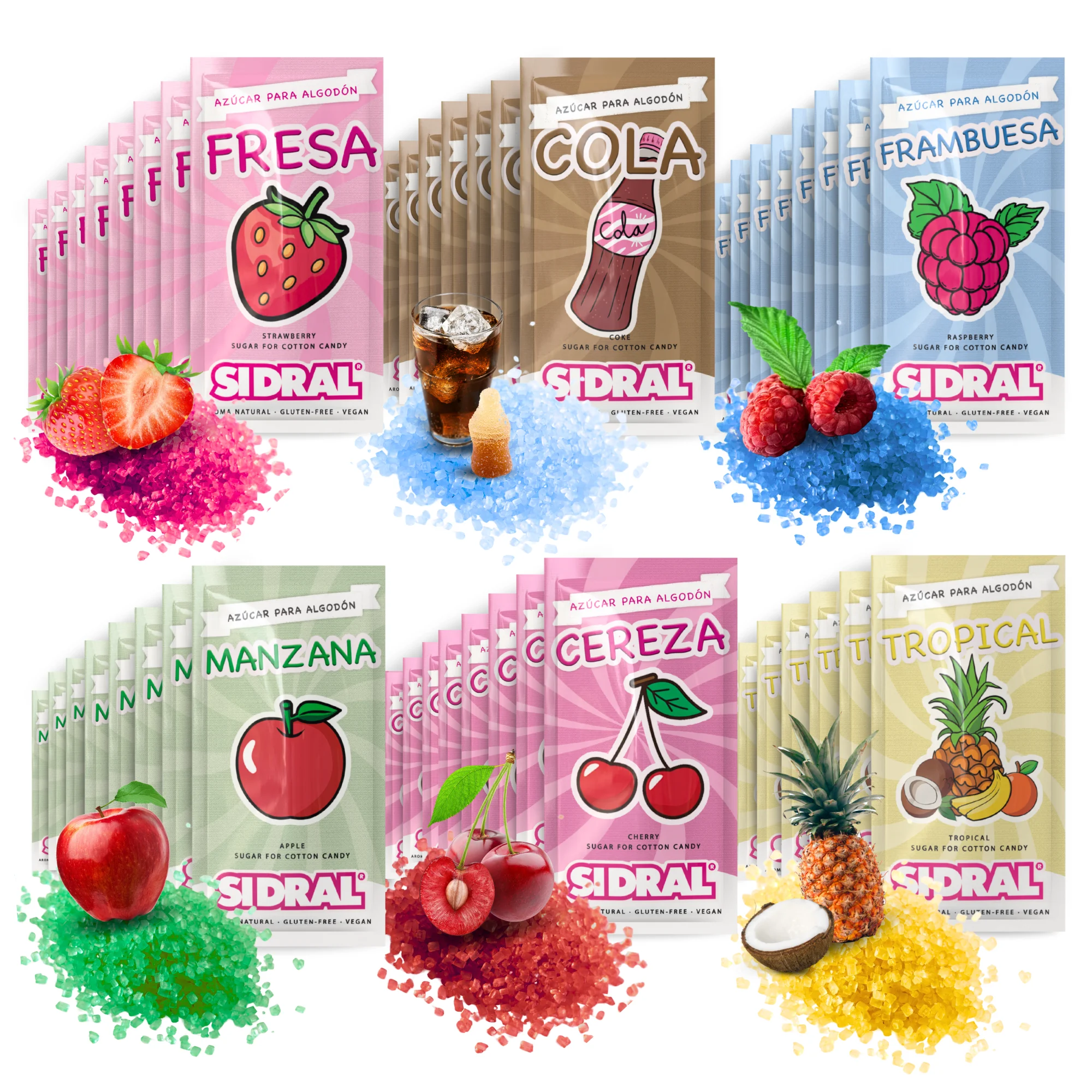♡Vista rápidaSIDRAL - 1000 grs. / 50 monodosis Degustación - Azúcar para Maquina de Algodón, Azucar de Sabores - 6 Sabores: Fresa, Manzana, Cereza, Cola, Tropical y Frambuesa.13.50 EUREUR 16.99Destacado★★★★★4.5