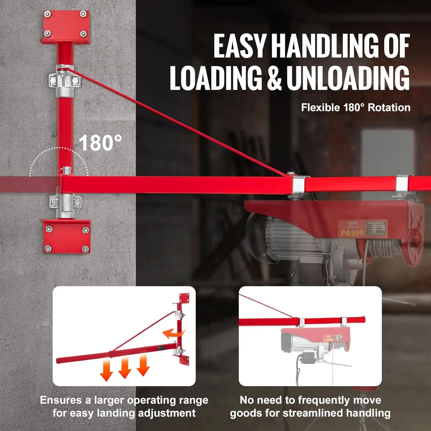 Brazo de Soporte Eléctrico de 600 kg, Soporte Giratorio de Acero para Herramientas con Varilla, 180 ° Ajustable para Taller o Garaje - TopDealBox
