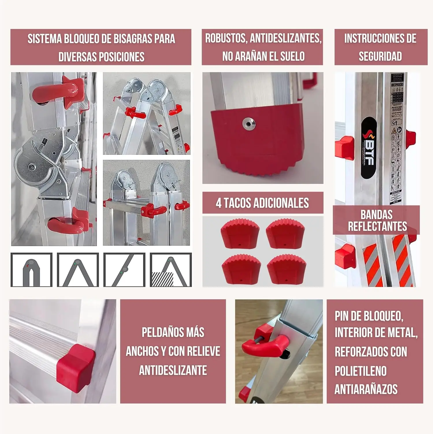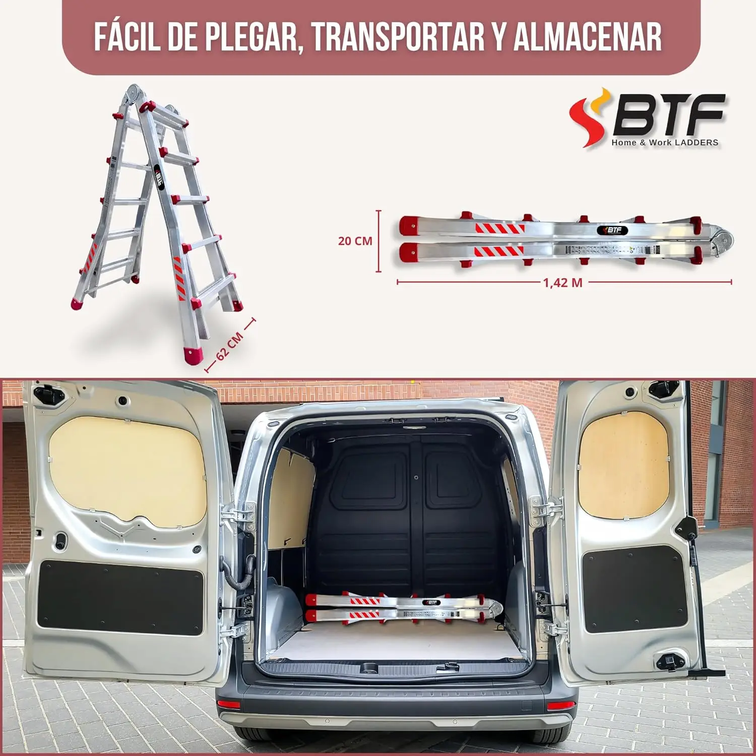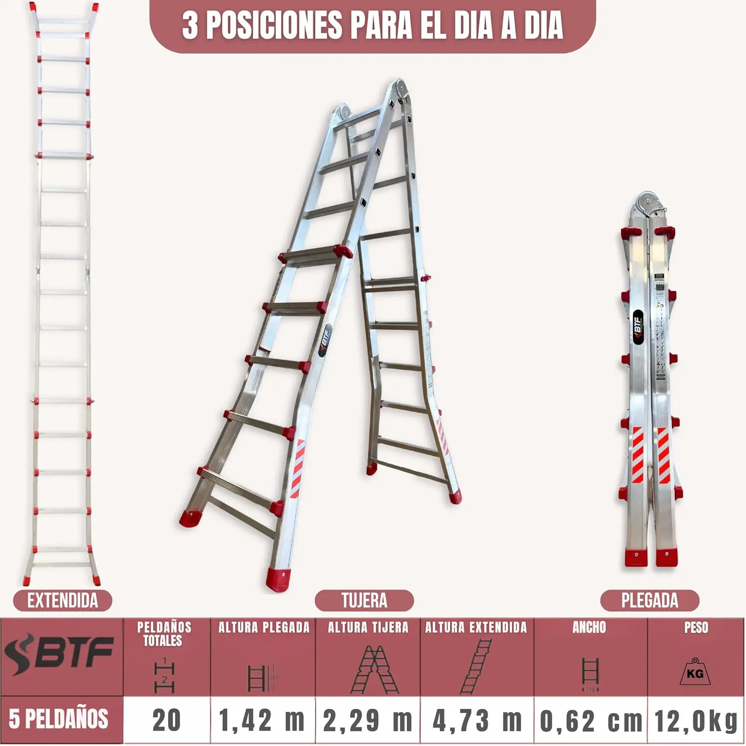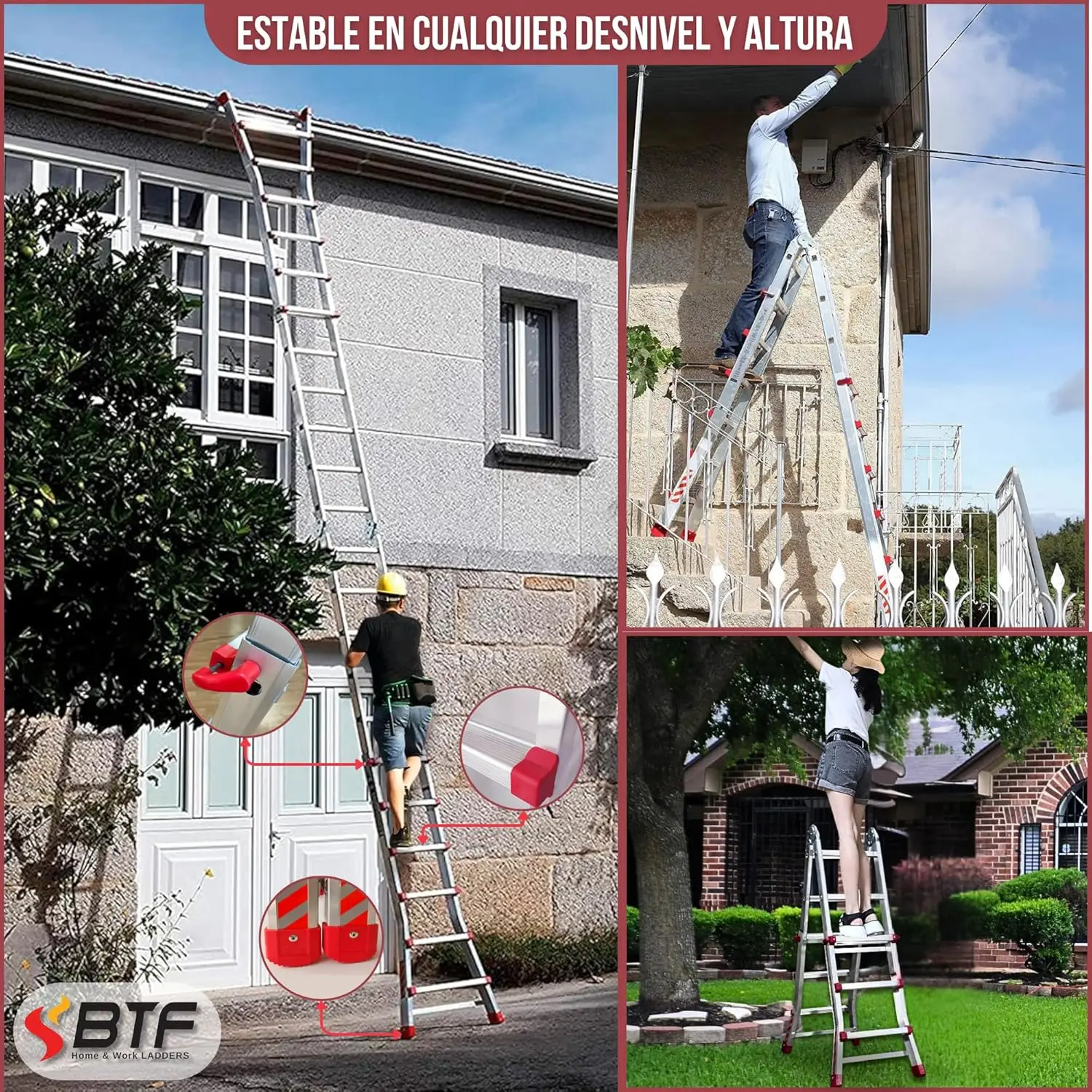 ↑Escalera telescópica de 6,2 M, 20,3 pies con gancho desmontable, aluminio, EN131, carga máxima de 150 kg para loft, interior, exterior, oficina, casa BTF Premium Escalera Telescópica hasta 20 Peldaños | Escaleras Plegables Aluminio | Escalera Extensible 5 Metros y 150kg | Multi - TopDealBox