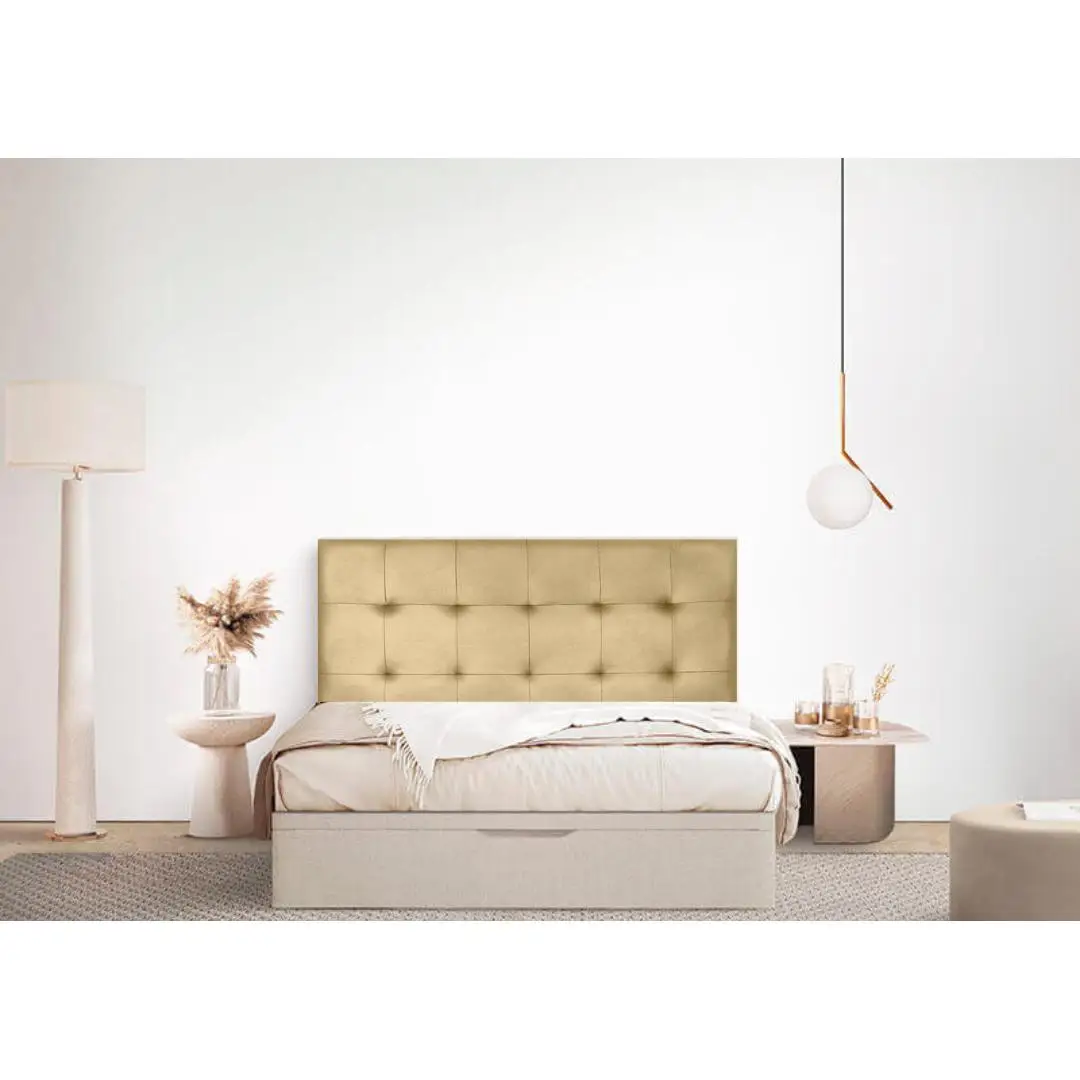Cabecero de Cama Modelo NAIROBI, tapizado en tela Polipiel Azahar de alta calidad, en 10 colores y en 10 tamaños diferentes. Detalle estético formado por cuadrículas simétricas y sus puntos de unión sumergidos al interior. HEADBOARD & BEDS. - TopDealBox