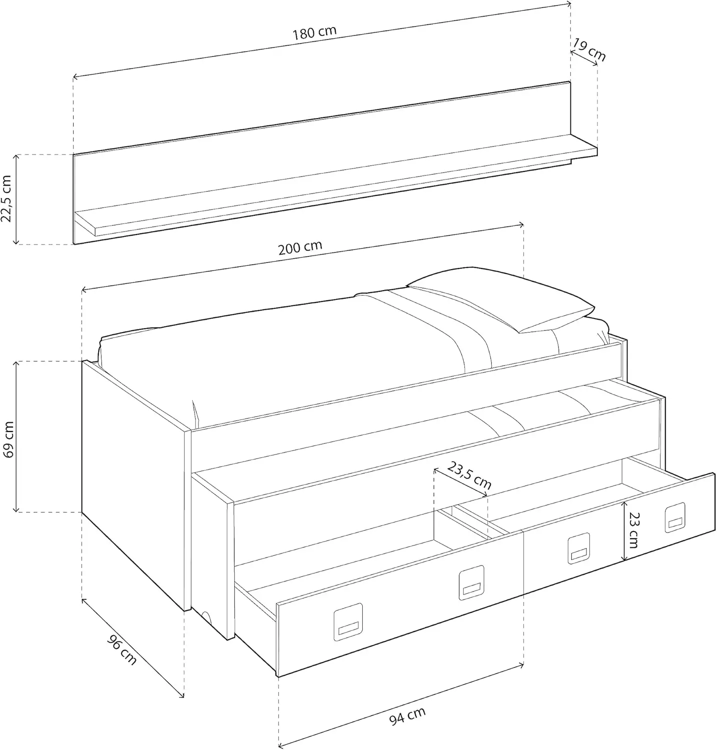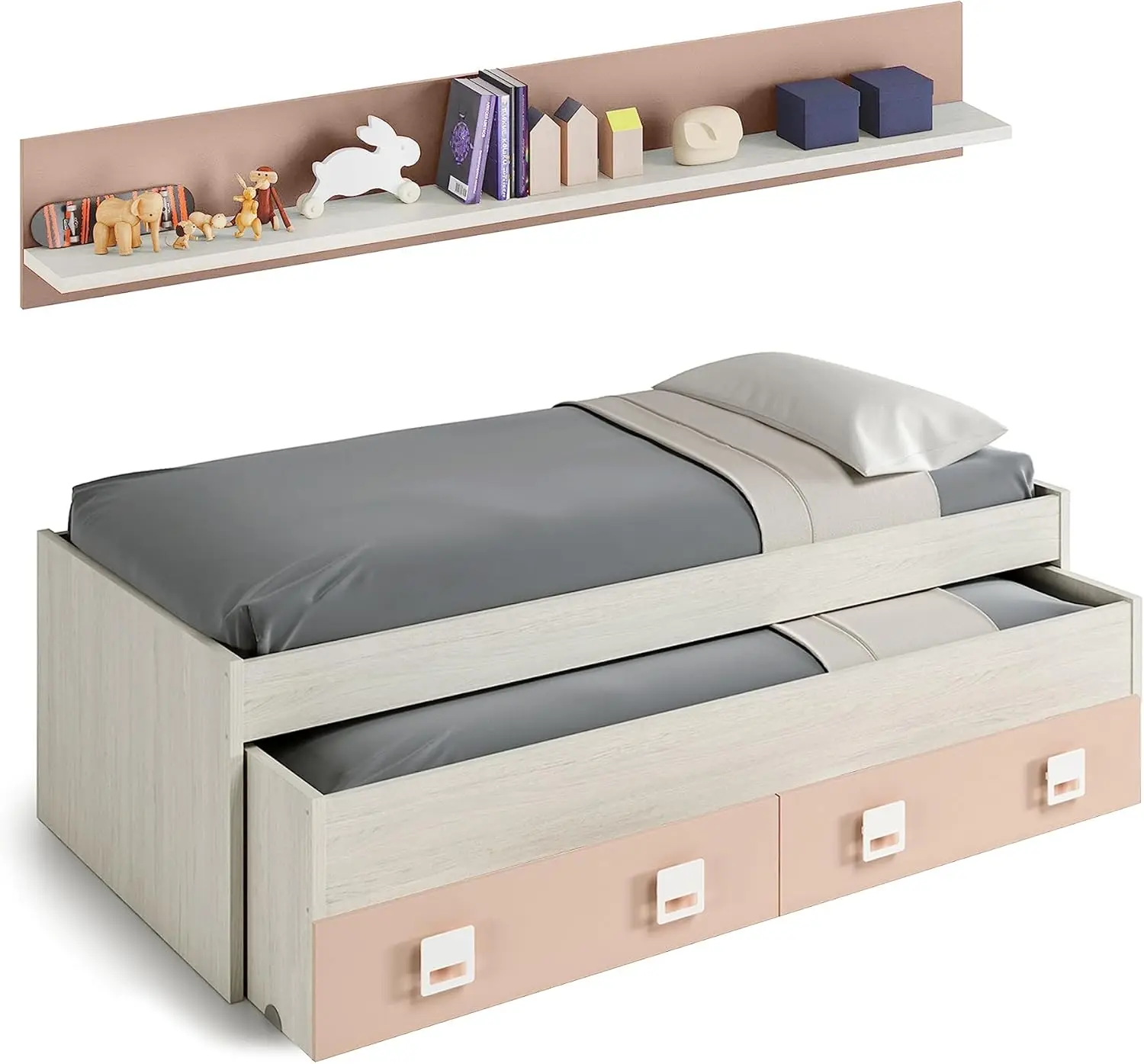 ♡Vista rápidaCama Nido Juvenil, 2 Camas y 2 cajones, Modelo Ares, Acabado en Color Blanco Alpes y Basalto, Medidas: 198 cm (Ancho) x 69 cm231.39 EUREUR 2476.08Destacado