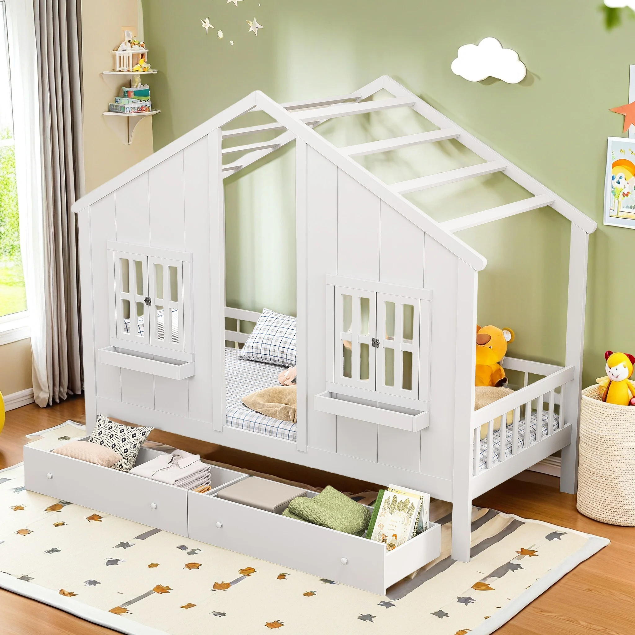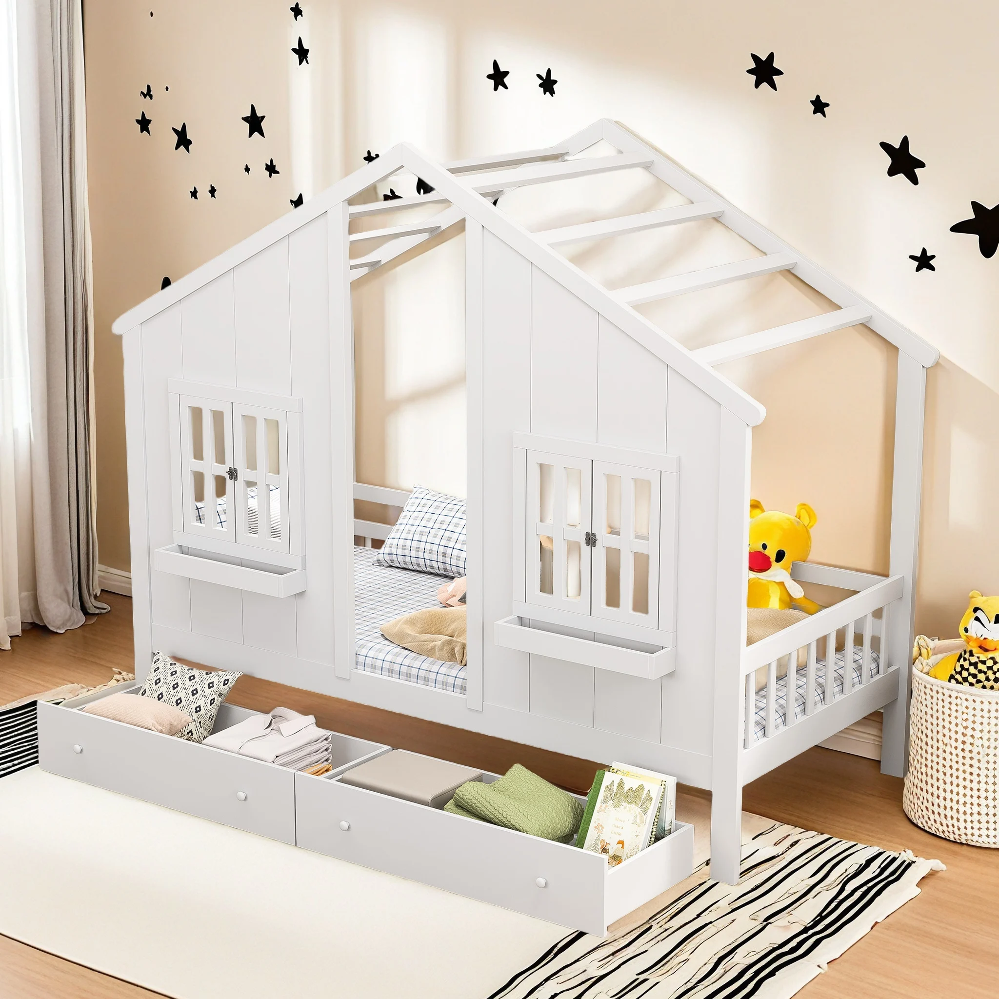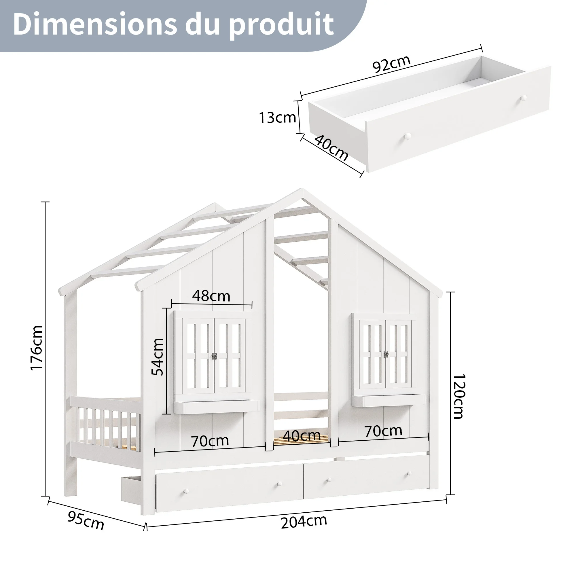 ♡Vista rápidaCama infantil 90x200cm con 2 cajones y tablero, cama individual, madera maciza con valla y somier, color blanco270.49 EUREUR 573.87Destacado