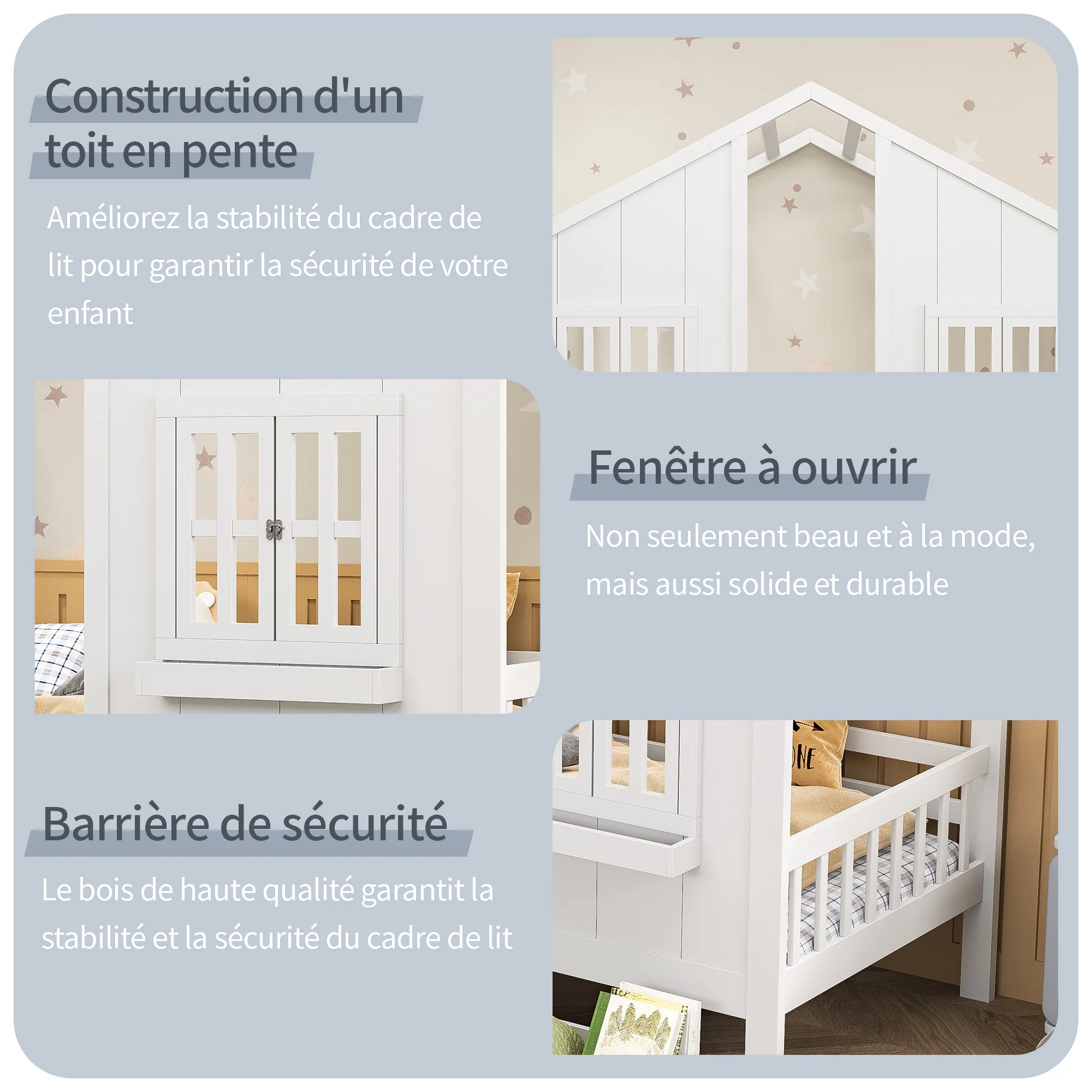 ♡Vista rápidaLitera para niños de 90x200 cm, con protección de barrera y escalera y pizarra, cama de madera maciza, con somier de láminas, estructura de cama349.83 EUREUR 716.47Destacado