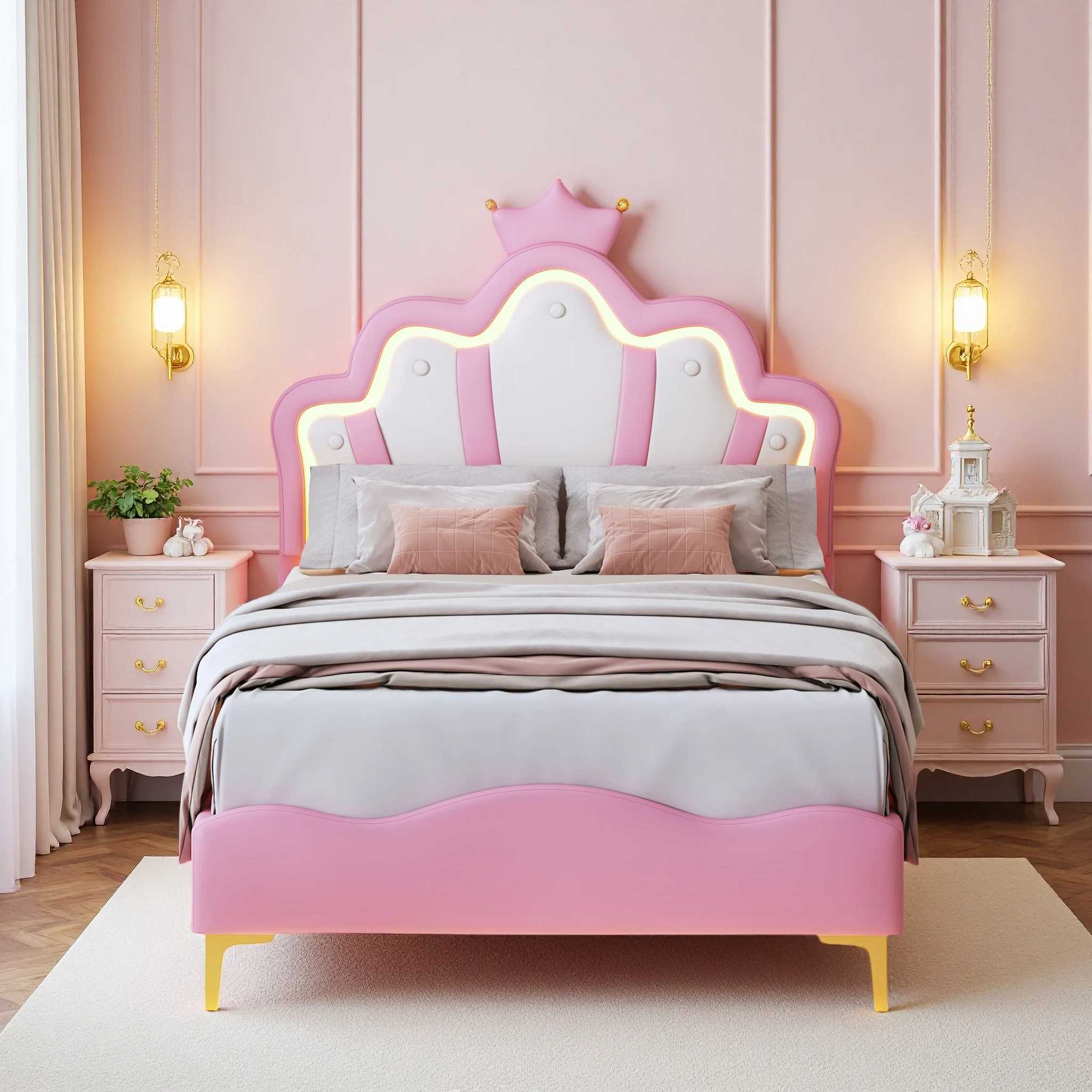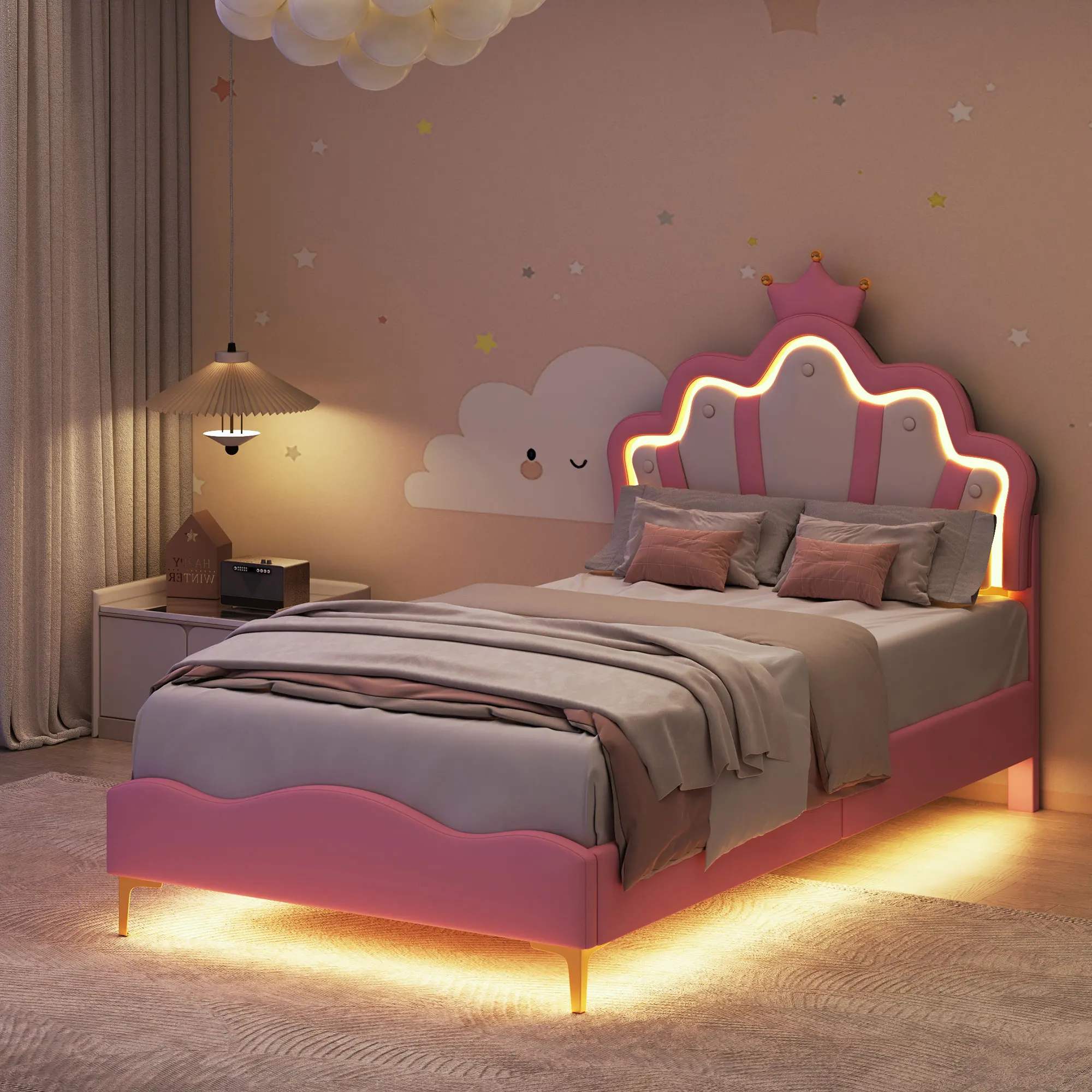♡Vista rápidaCama infantil 90/140x200 cm, cama individual acolchada con iluminación LED, cabecero corona y somier de láminas, terciopelo, rosa229.17 EUREUR 458.34Destacado★★★★★★4.9