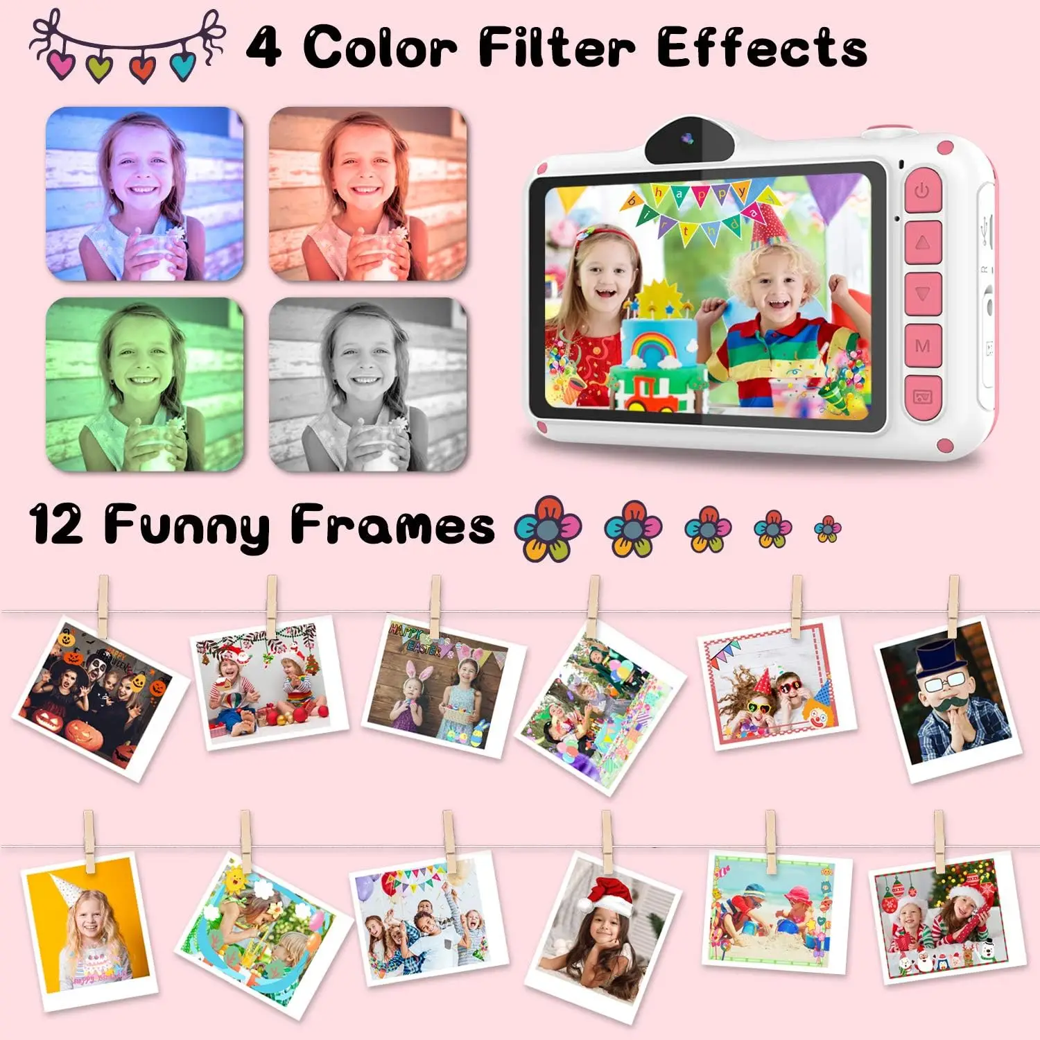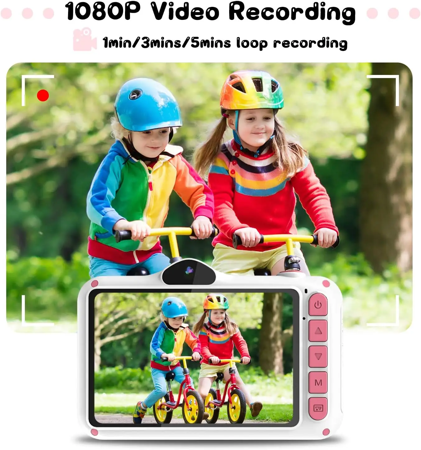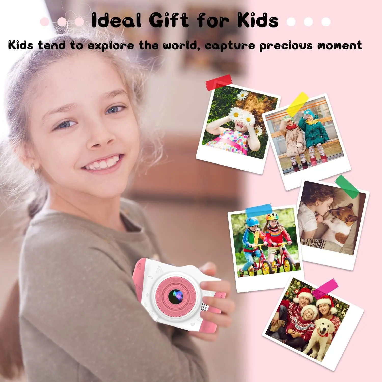 Cámara para Niños WOWGO X8, 3.5'' Digital Selfie Infantil, 12MP, 1080P HD, Lente Dual, 32 GB Tarjeta TF, Regalo Niños, Rosa, ENVIO 24H - TopDealBox