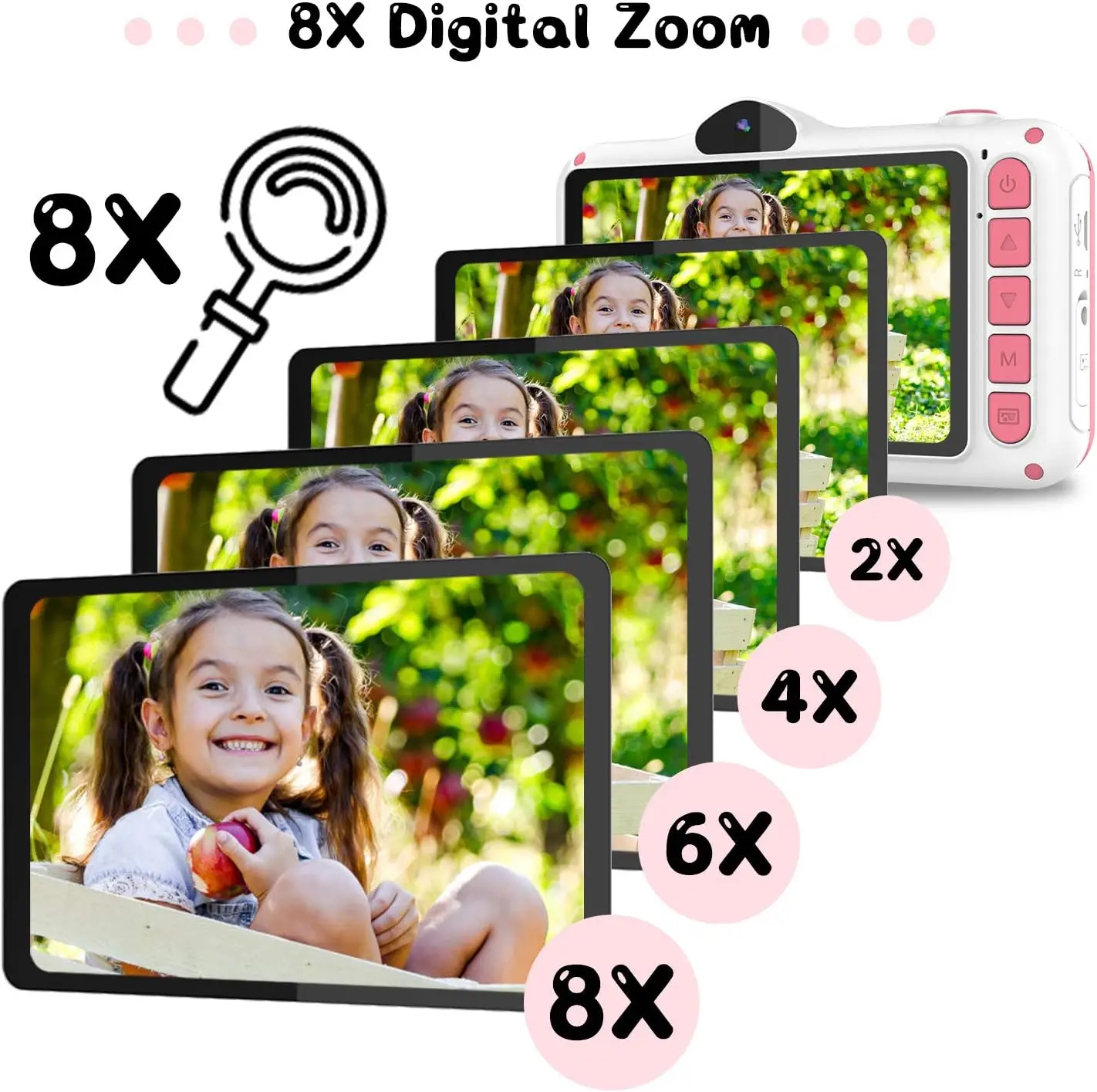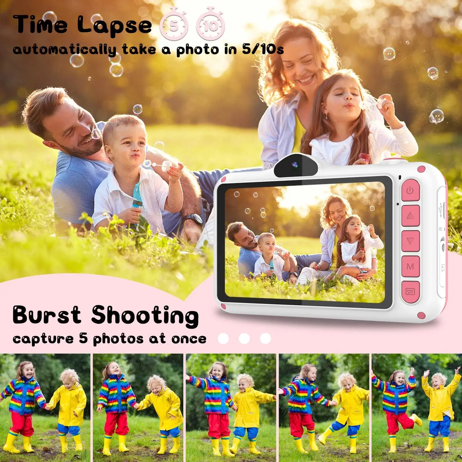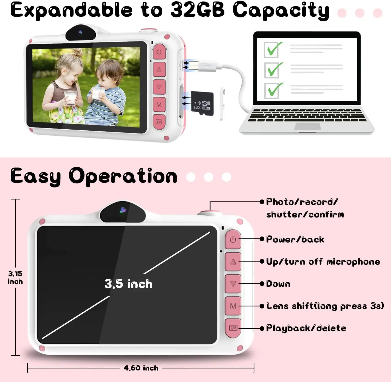 Cámara para Niños WOWGO X8, 3.5'' Digital Selfie Infantil, 12MP, 1080P HD, Lente Dual, 32 GB Tarjeta TF, Regalo Niños, Rosa, ENVIO 24H - TopDealBox