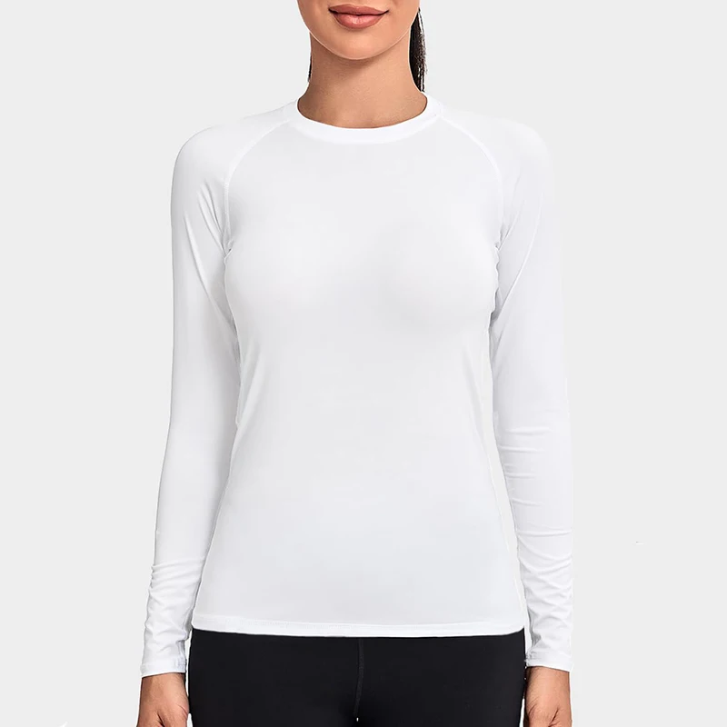 Camiseta de compresión para mujer, camiseta atlética de manga larga para Yoga, correr, primavera y otoño, entrenamiento de gimnasio, capas básicas elásticas, camisetas de protección contra sarpullidos - TopDealBox