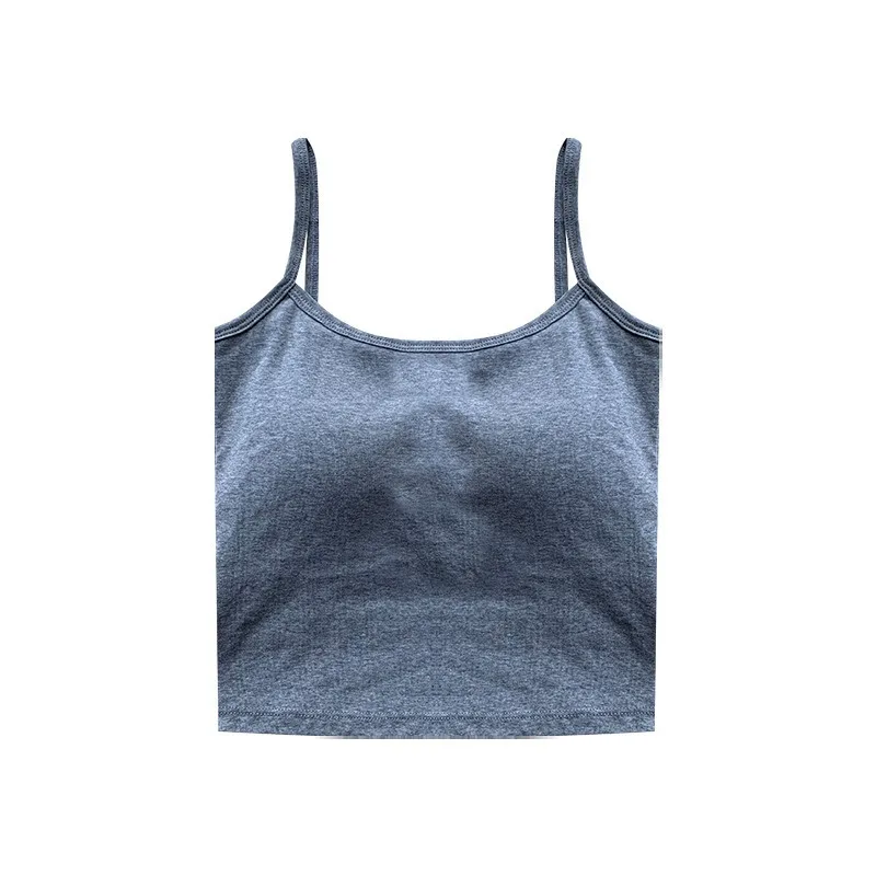 Camisola ajustada sin mangas con tirantes finos de Color sólido para mujer coreana 1 unidad con almohadilla para el pecho - TopDealBox