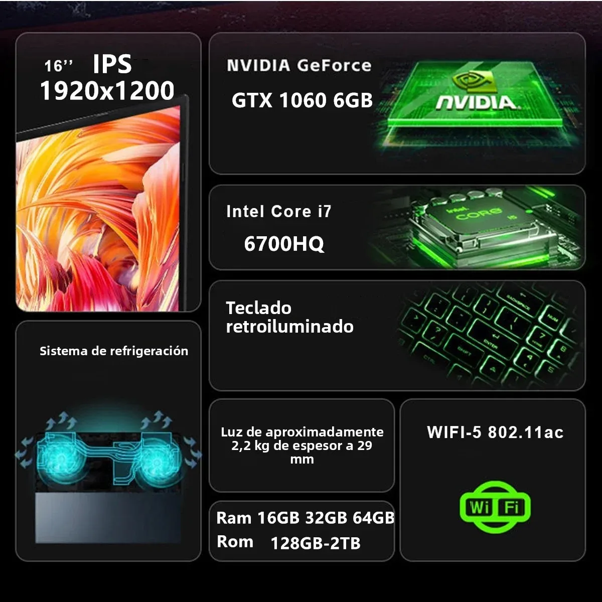 ♡Vista rápidaReconocimiento facial Intel Notebook N5095 Gráficos UHD 16" Portátil 16GB 32GB RAM Max 2TB ROM Windows 11 Wifi 5 BT 4.2 Teclado RGB214.69 EUREUR 244.47Destacado★★★★★5.0