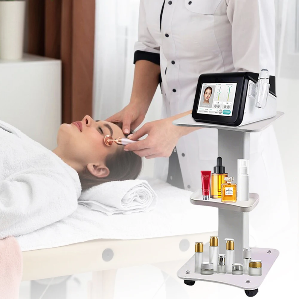 Carrito Rodante de 3 Niveles para Salón de Belleza, con Capacidad de Carga de 40 kg, Soporte para Equipo de Spa, Mesa de Salón, Estante de Madera, Rotación de 360° ° Ruedas Silenciosas - TopDealBox