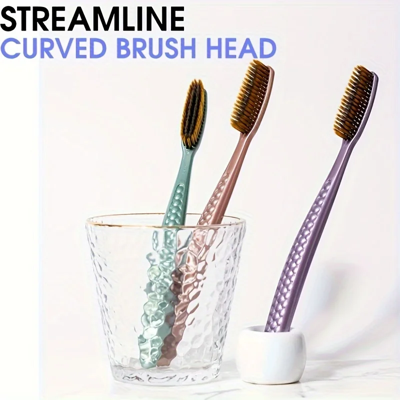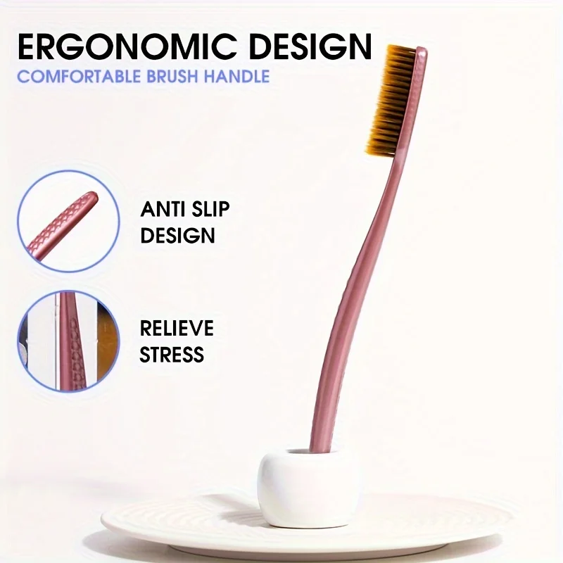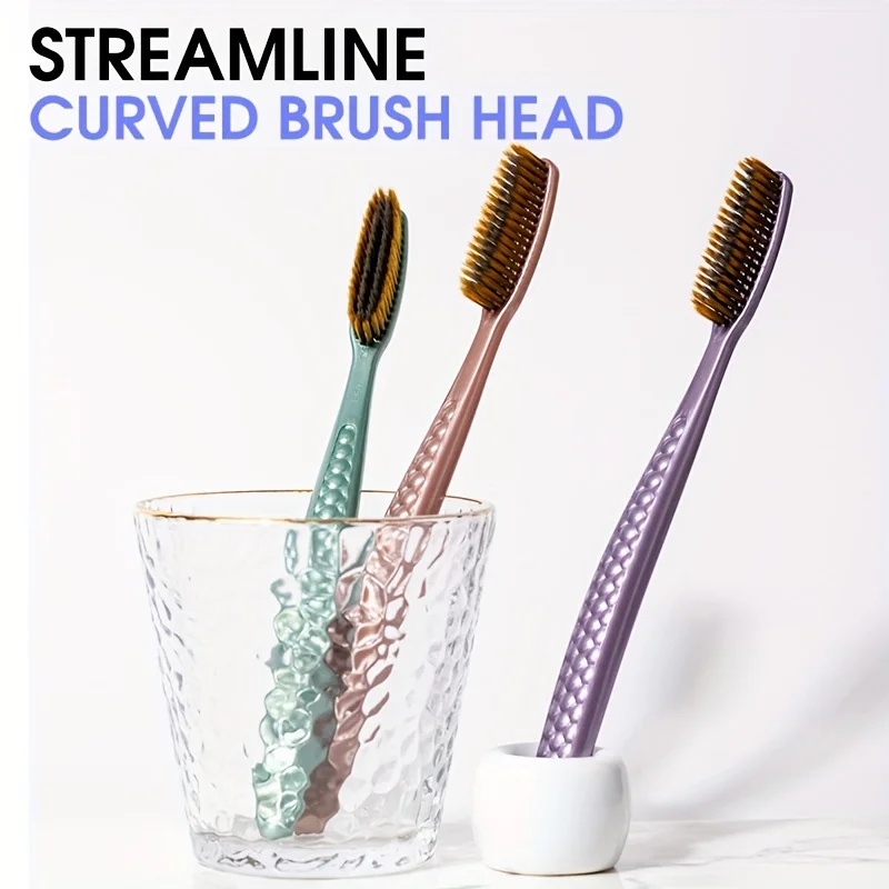 Cepillo de dientes de pelo suave, bolsa de 5 uds con cabezal de cepillo curvo y extendido para limpieza bucal profunda en 5 colores para adultos, - TopDealBox