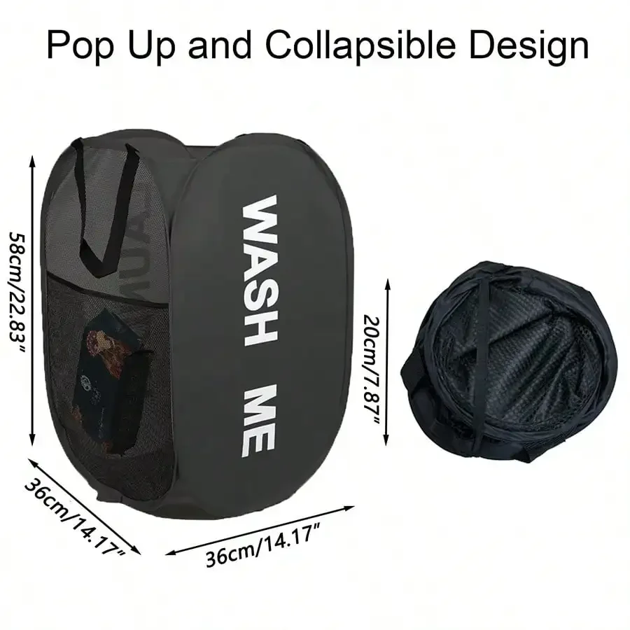 Cesto de ropa portátil de malla plegable con apertura amplia, transpirable, que ahorra espacio, para dormitorio, viajes y artículos de baño - TopDealBox